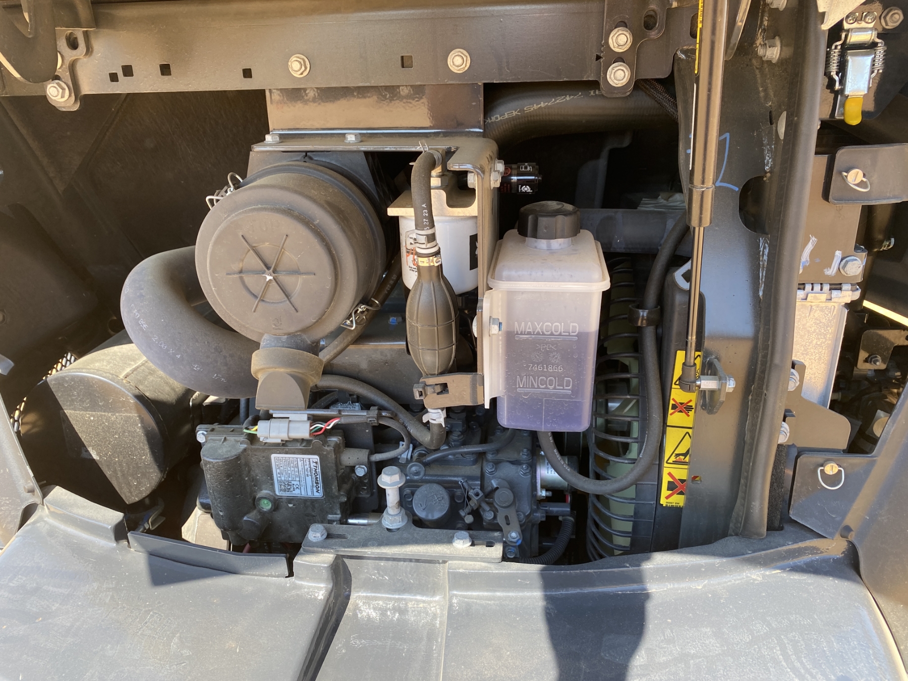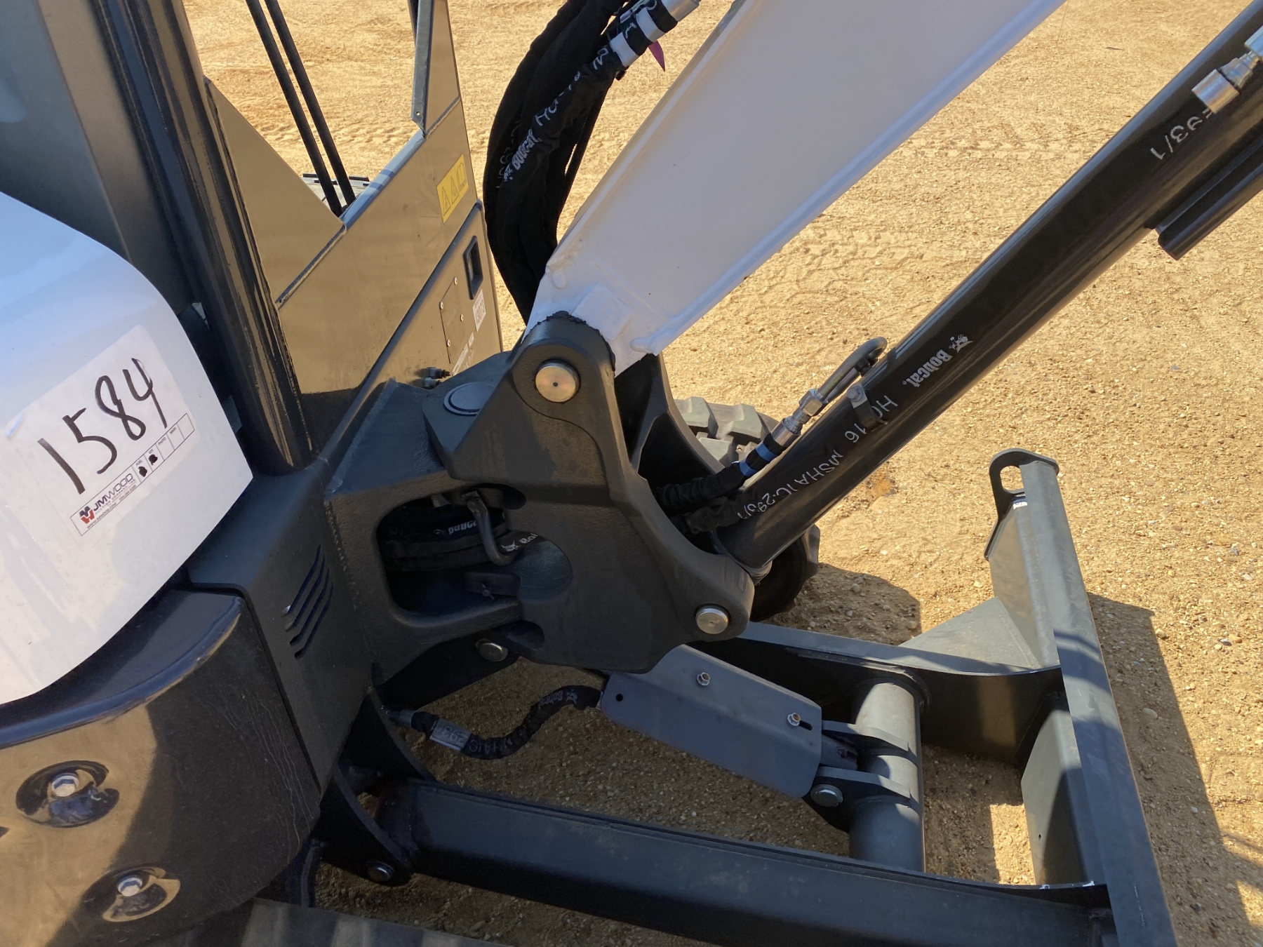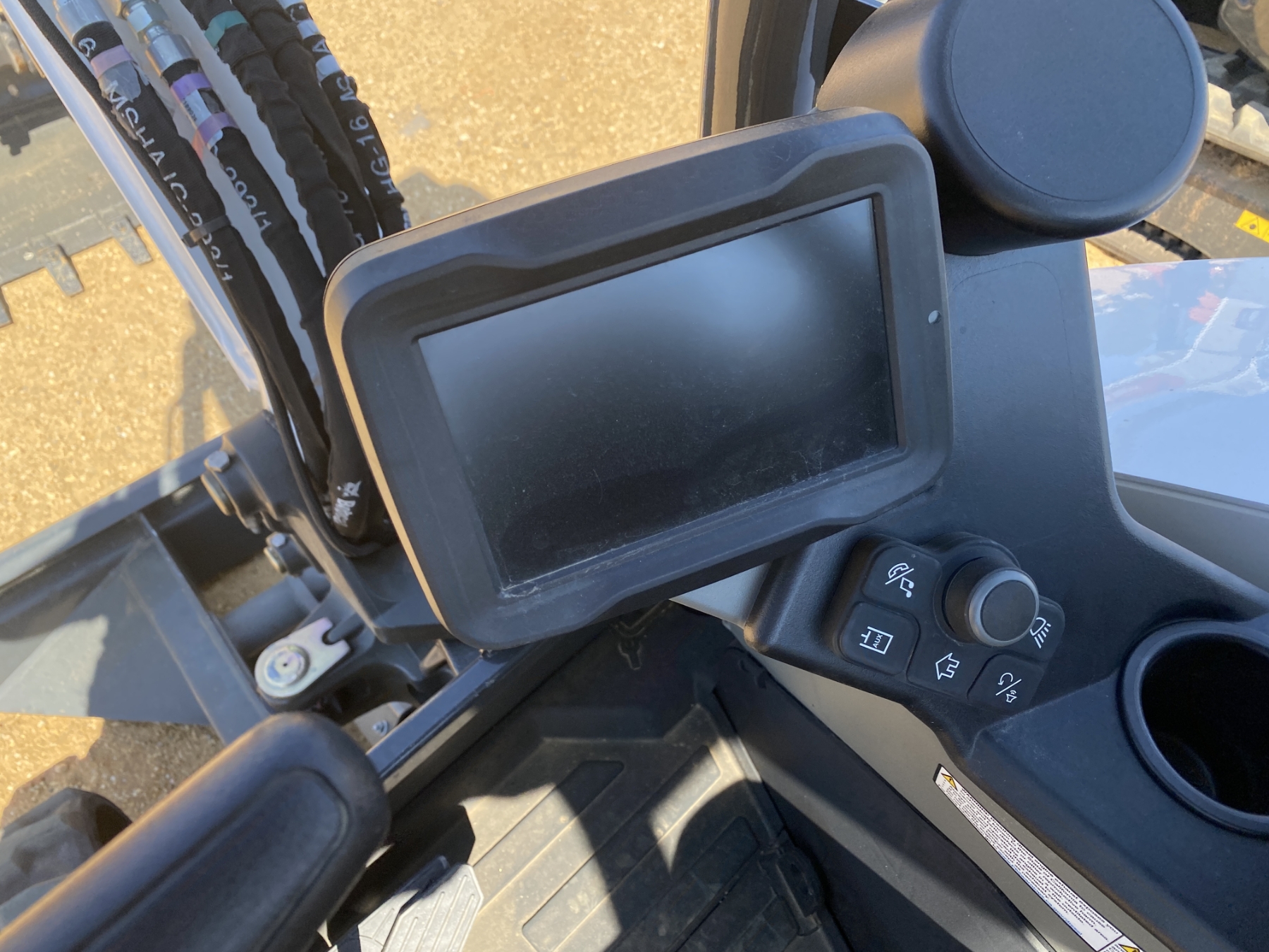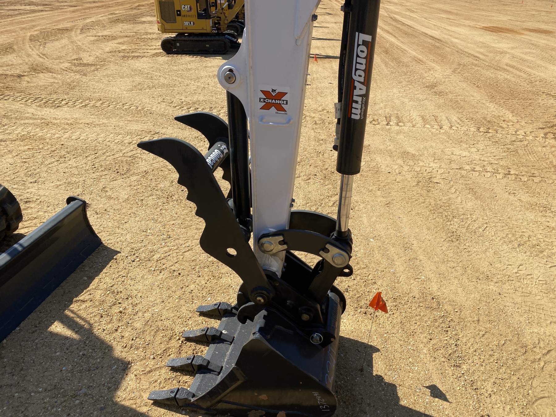5' 9" stick, 24" bucket, coupler, hyd thumb, aux hyd, blade, canopy