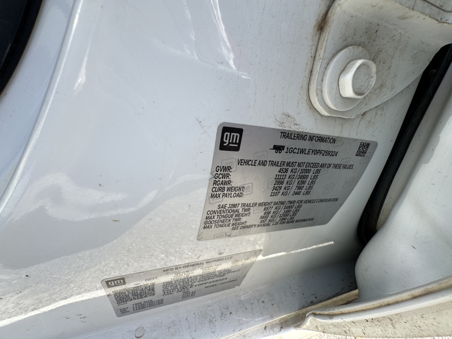 Vehicle ID Number: 1GC1WLEY0PF259324