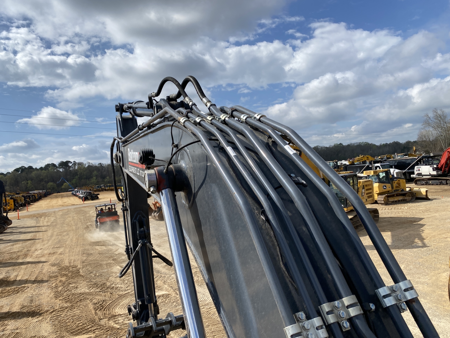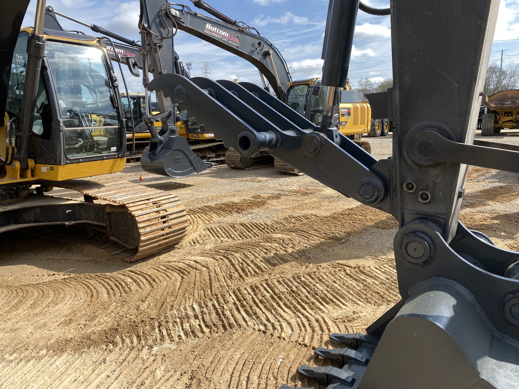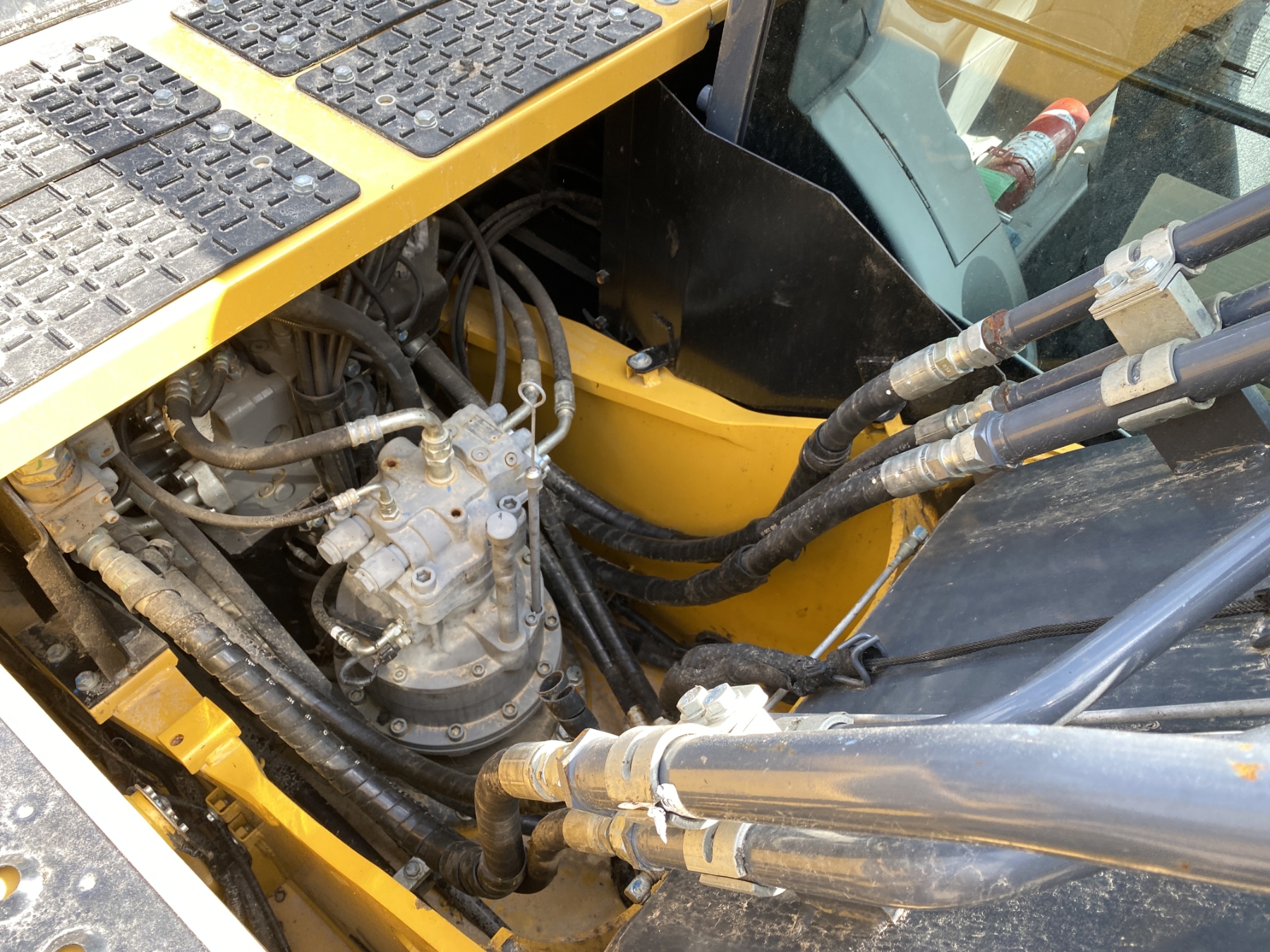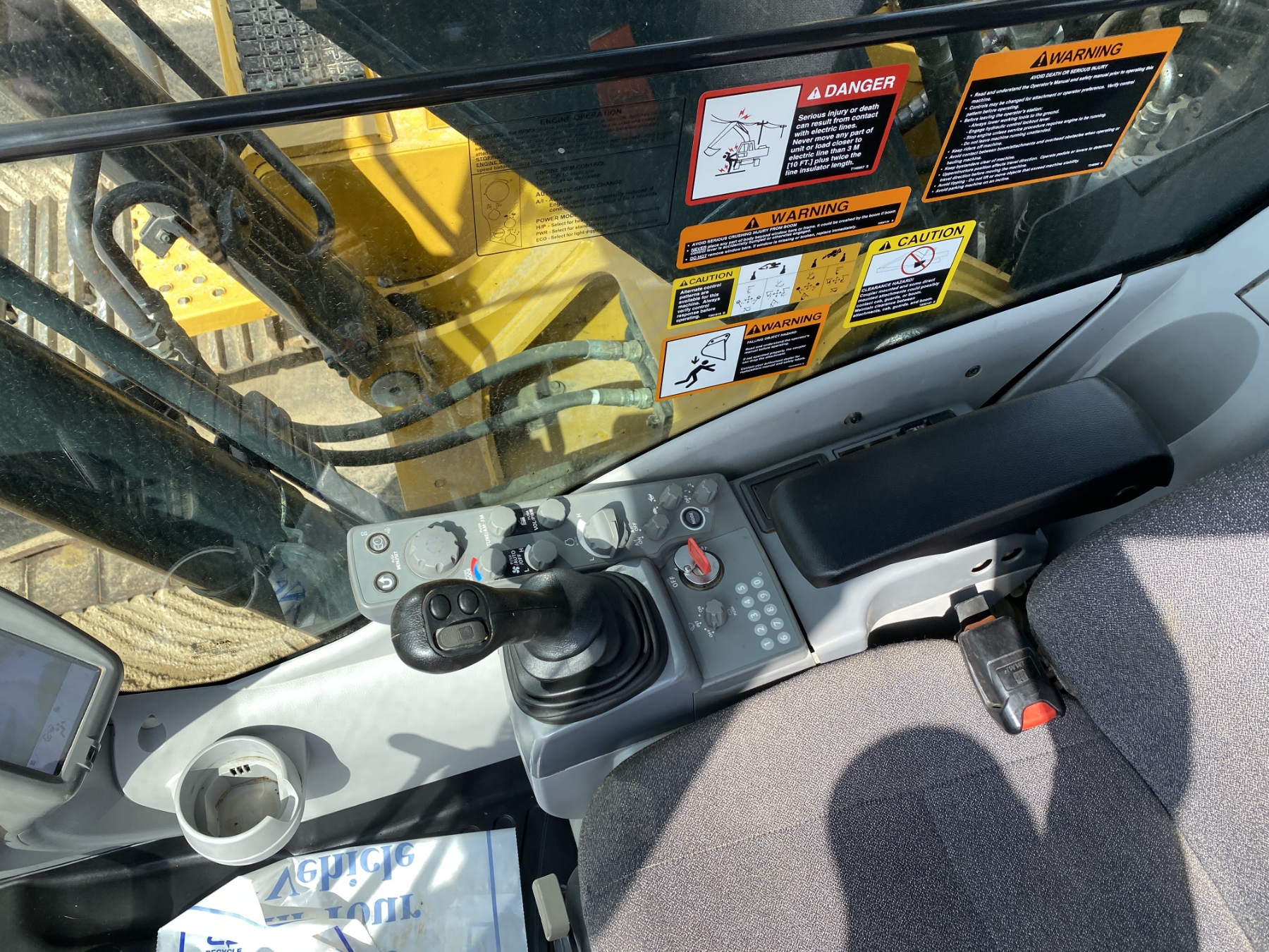 9' 6" stick, 54" bucket, hyd thumb, aux hyd, cab, A/C