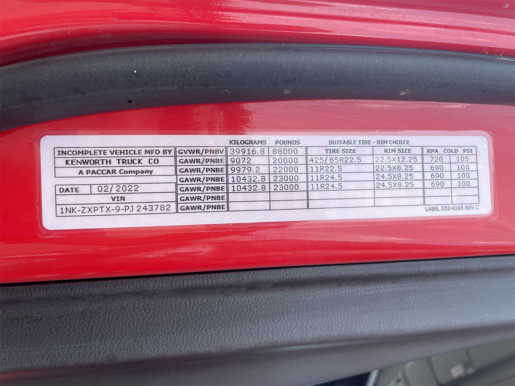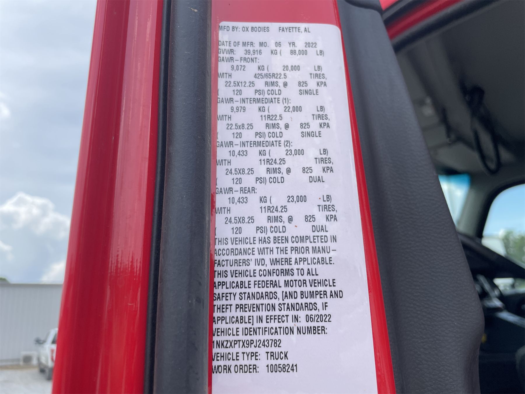 Vehicle ID Number: 1NKZXPTX9PJ243782