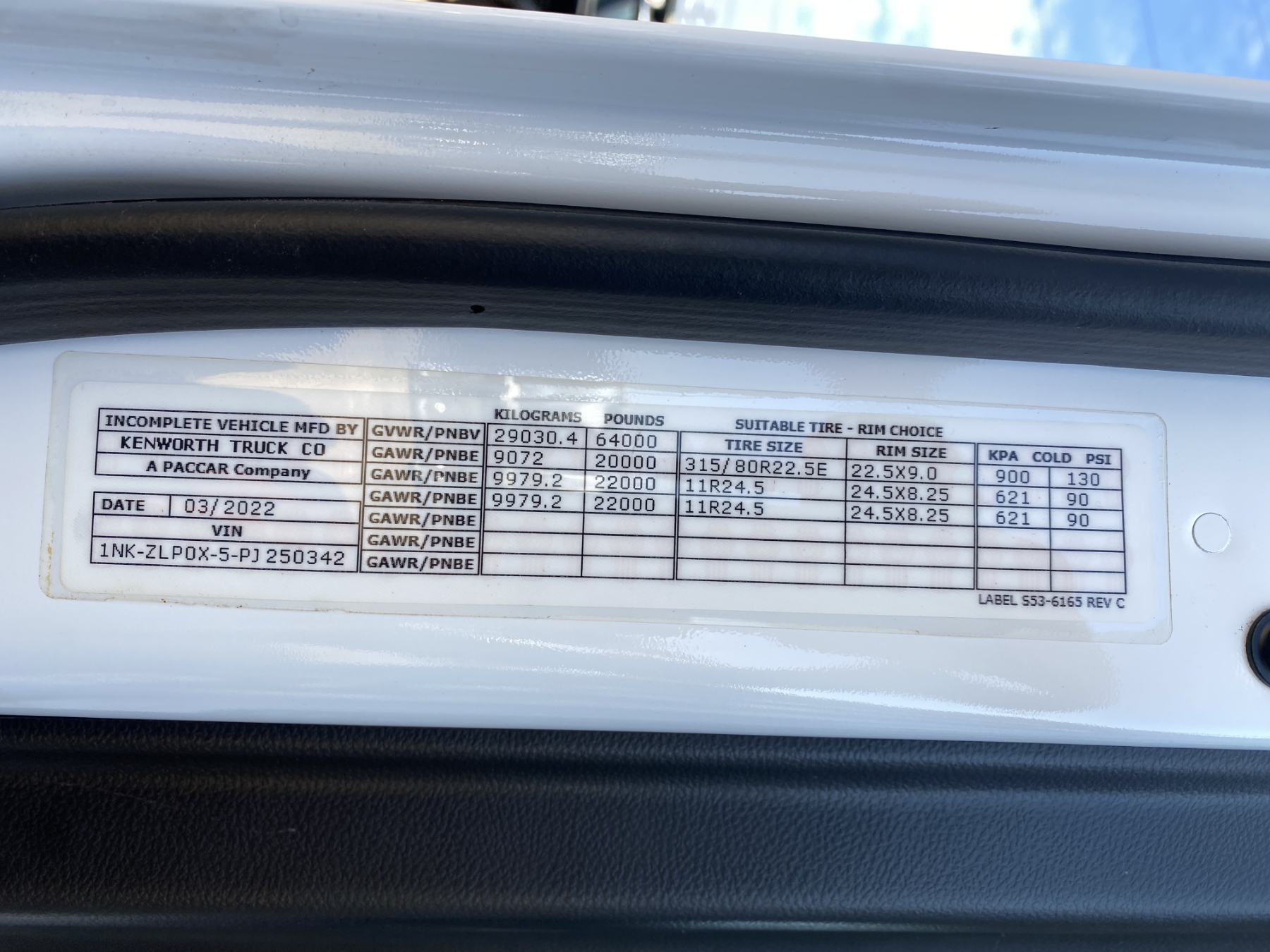 Vehicle ID Number: 1NKZLP0X5PJ250342