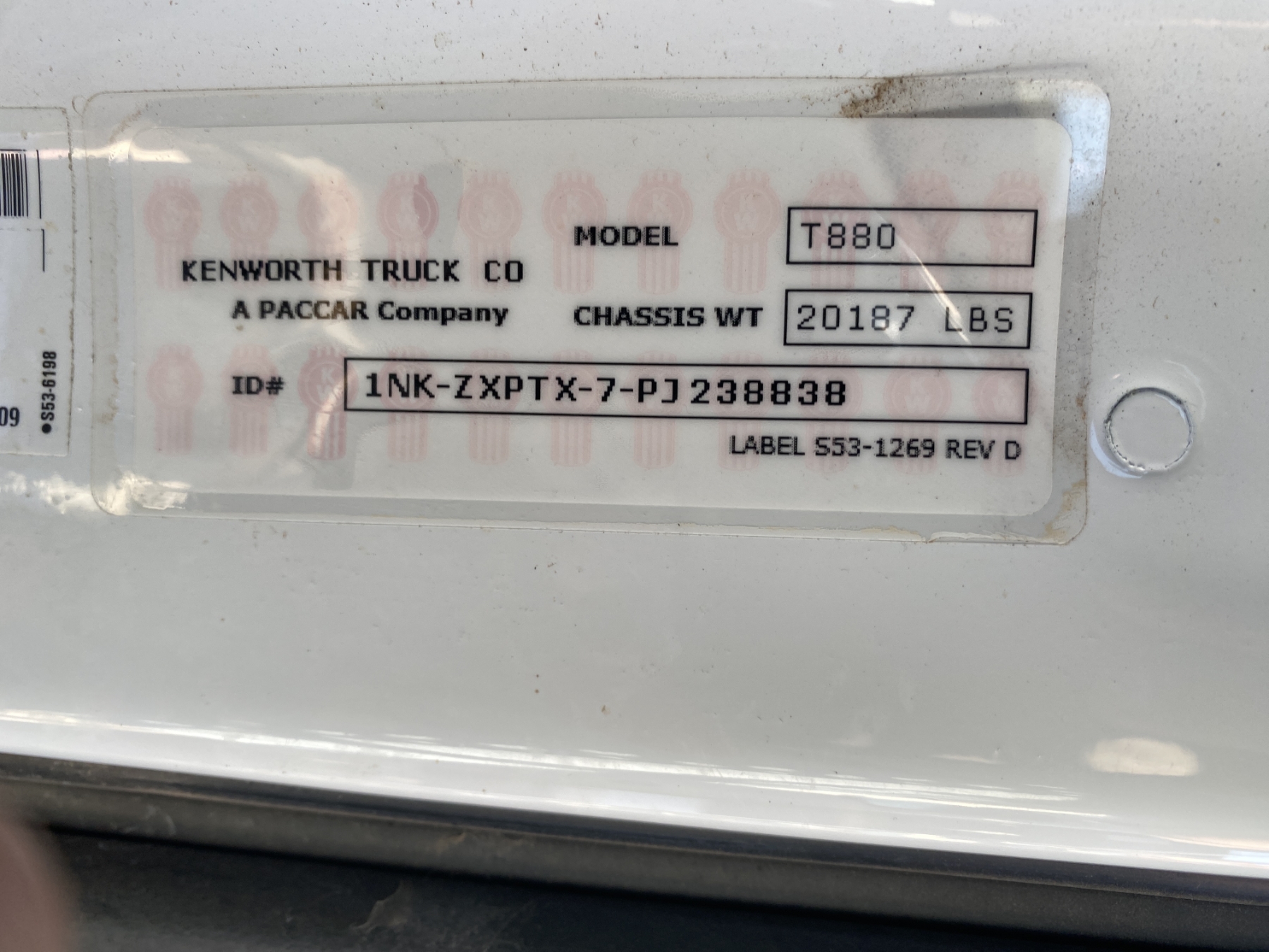 Vehicle ID Number: 1NKZXPTX7PJ238838