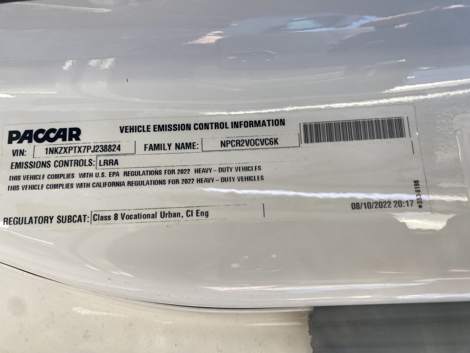 Vehicle ID Number: 1NKZXPTX7PJ238824