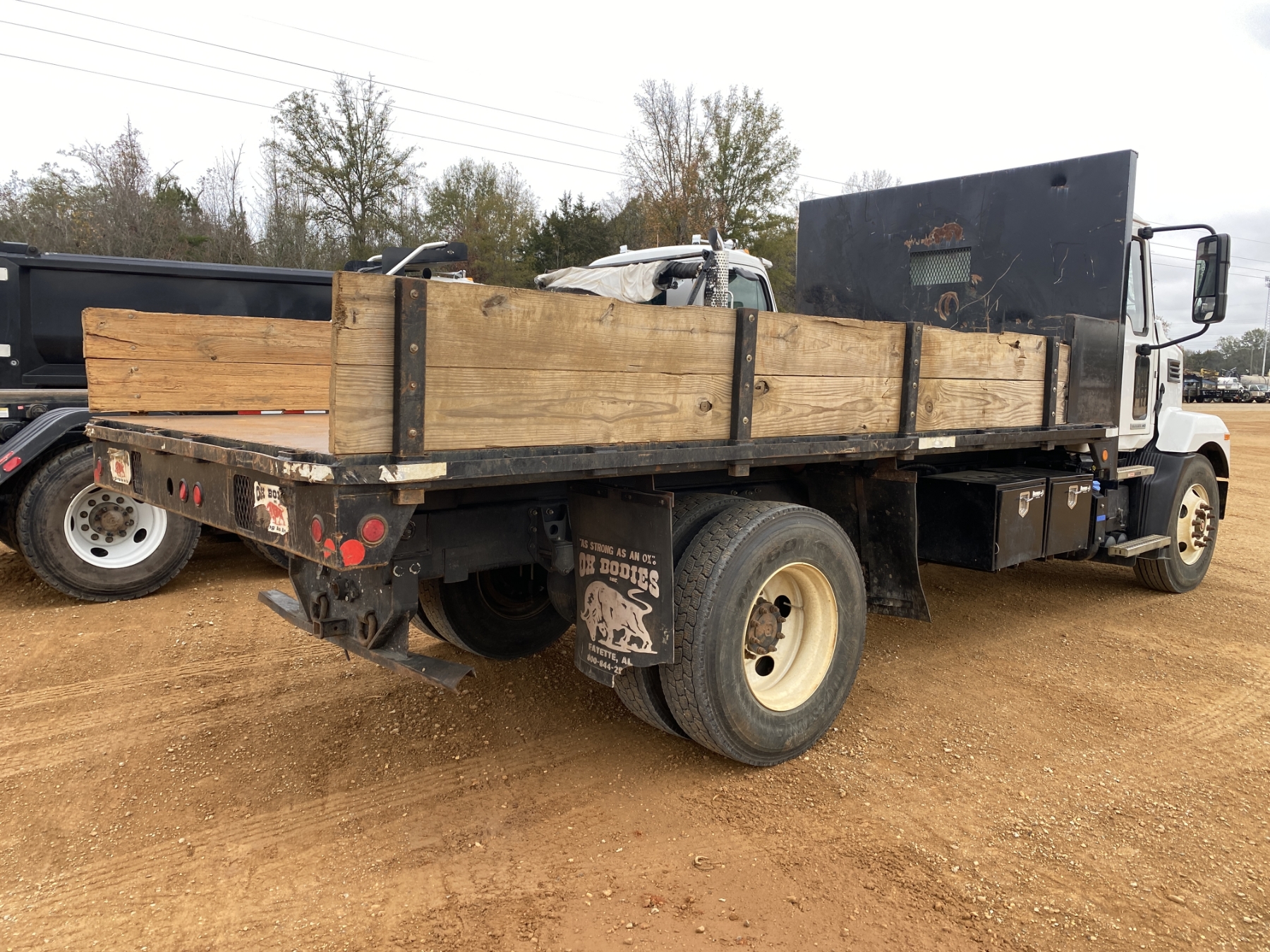S/A, Cummins B6.7 engine, Allison A/T, 25,995 lb. GVWR, 16' Ox flatbed dump body, 11R22.5 tires