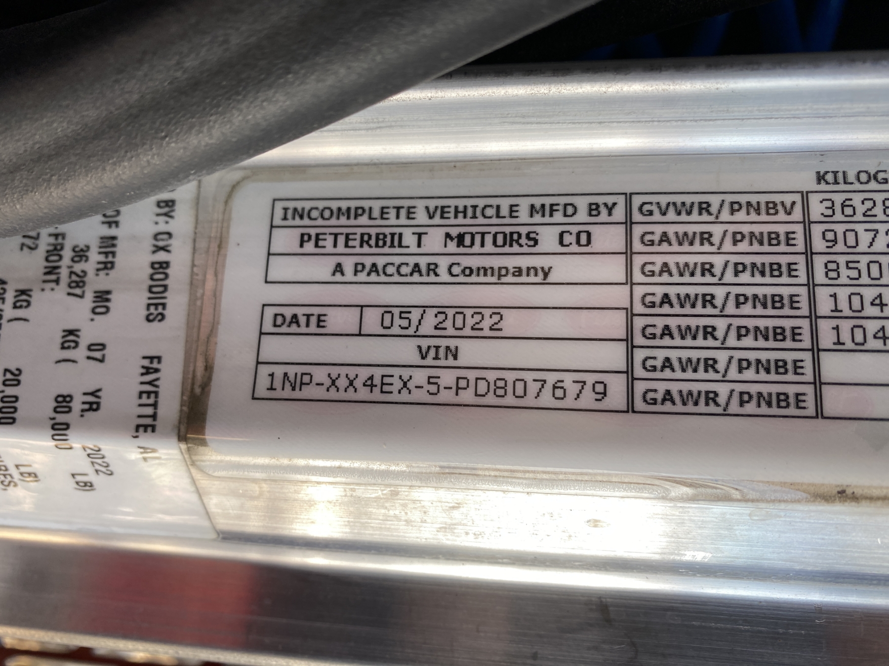 Vehicle ID Number: 1NPXX4EX5PD807679
