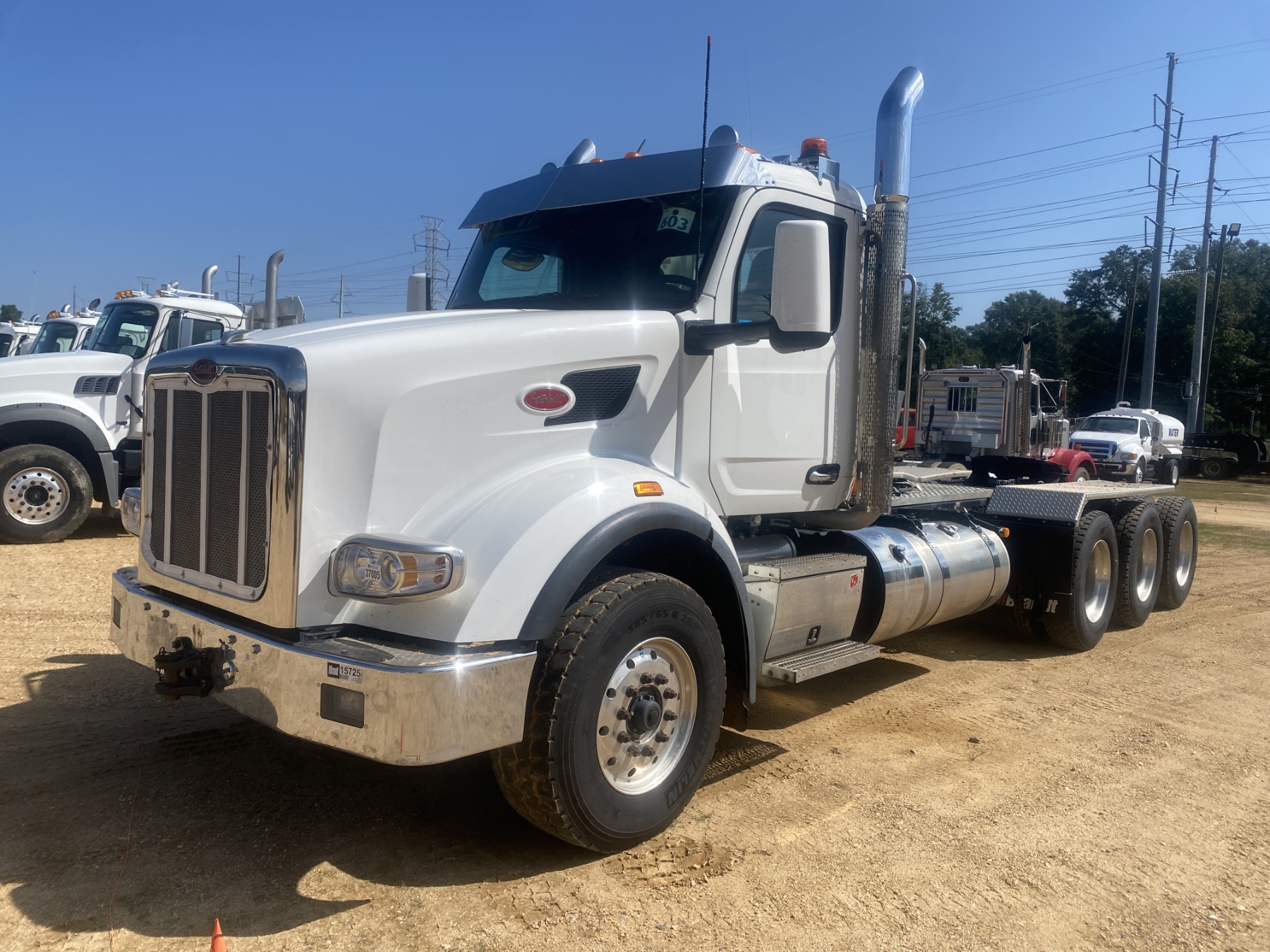 Tri Drive, 510 HP Paccar MX-13 engine, 18 speed trans, 60K rears, air ride, 18K front, alum headache rack, 11R24.5 rear tires, 385/65R22.5 front tires, all alum