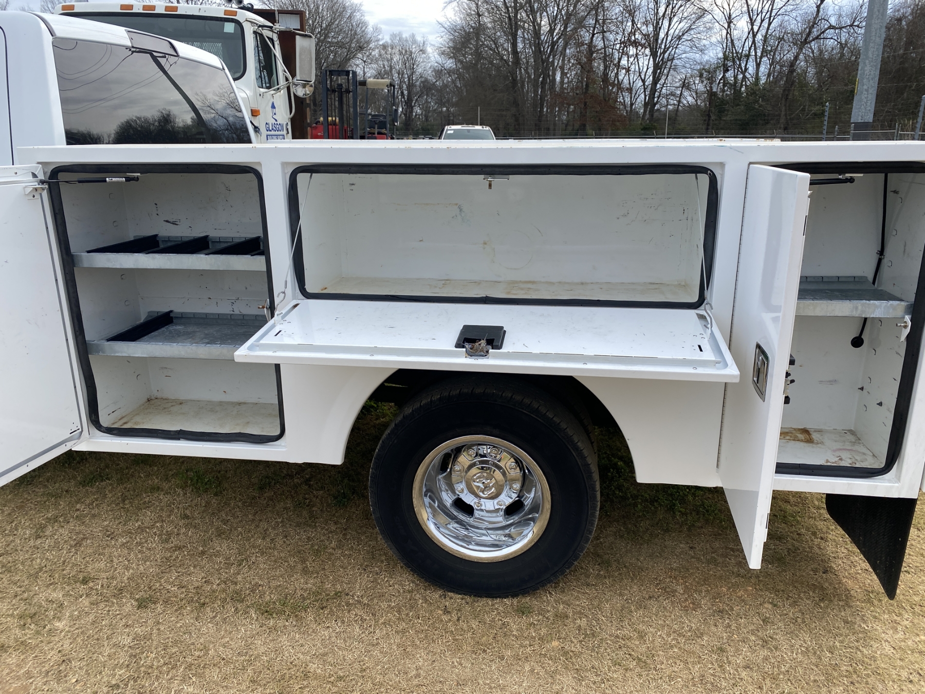 4x4, crew cab, Cummins diesel, A/T, Warner service body