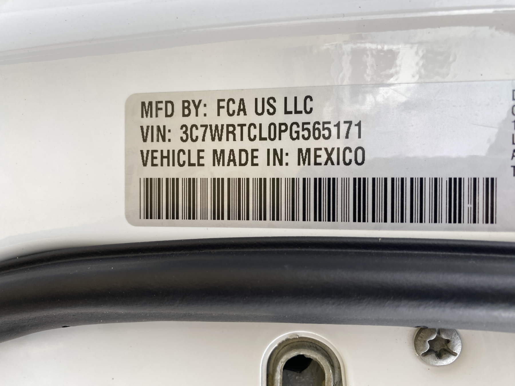 Vehicle ID Number: 3C7WRTCL0PG565171