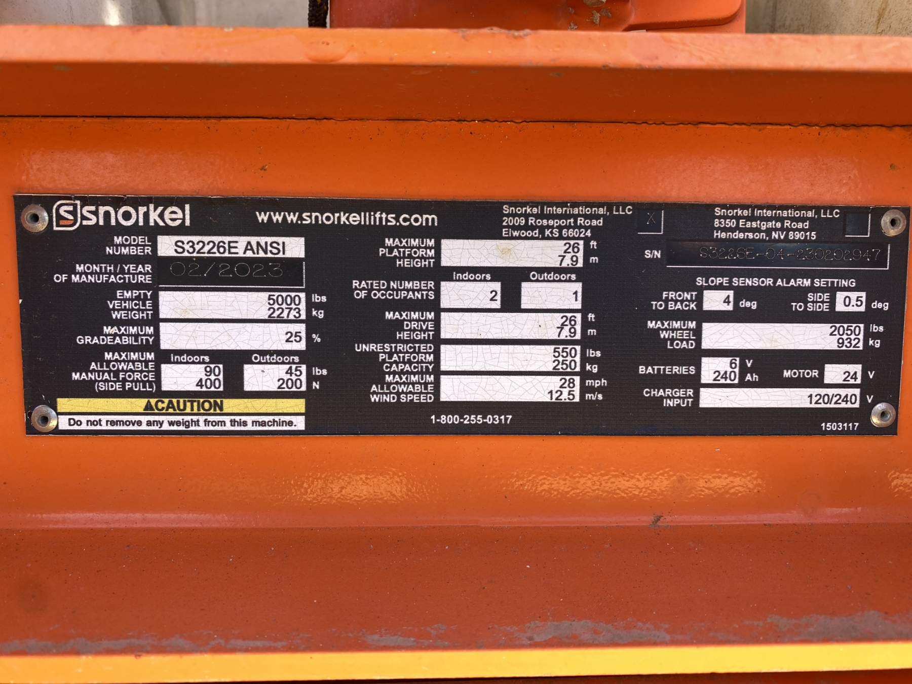26' platform height, 550 lb. capacity, 24V electric