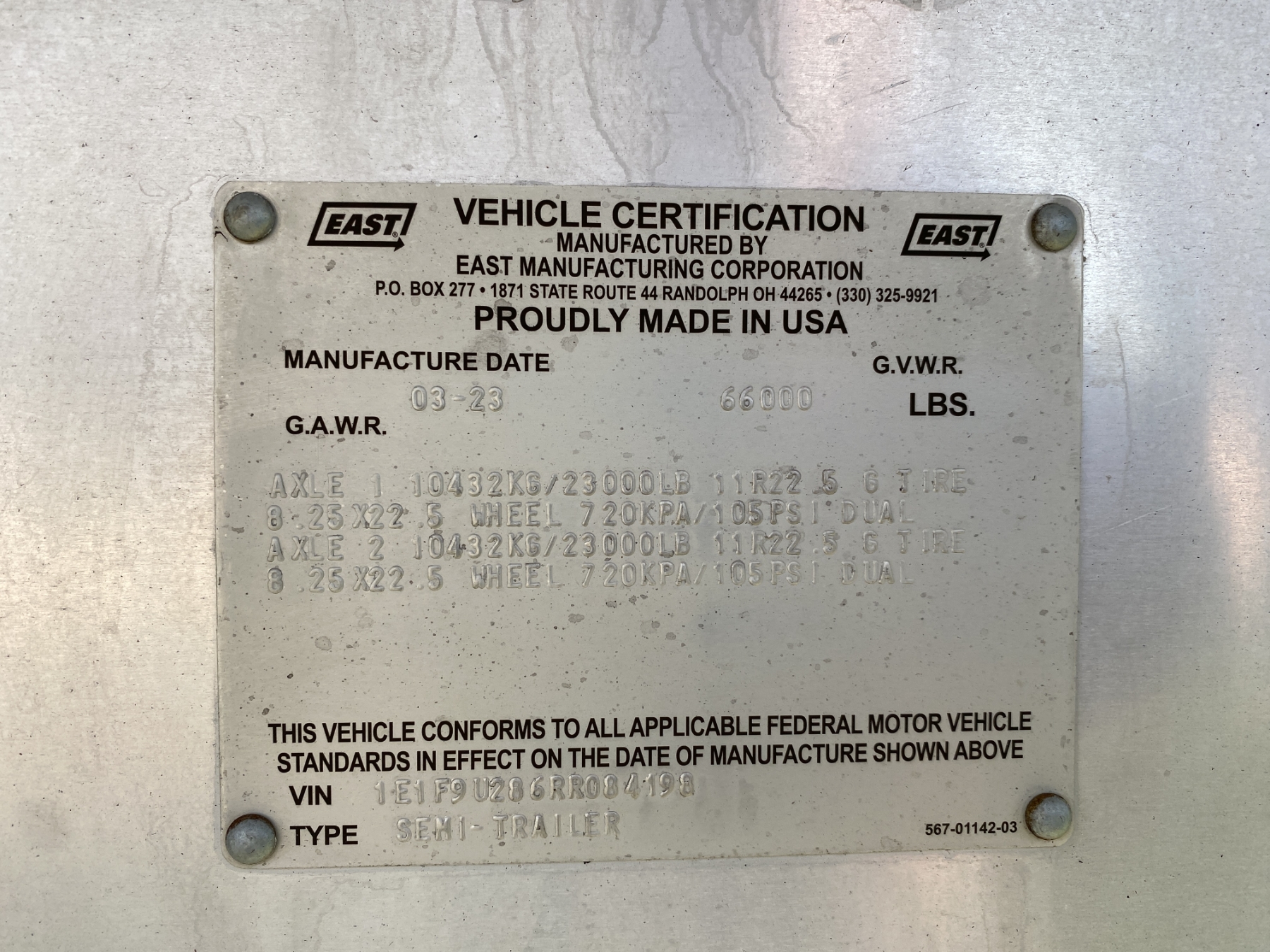 Vehicle ID Number: 1E1F9U286RR084198