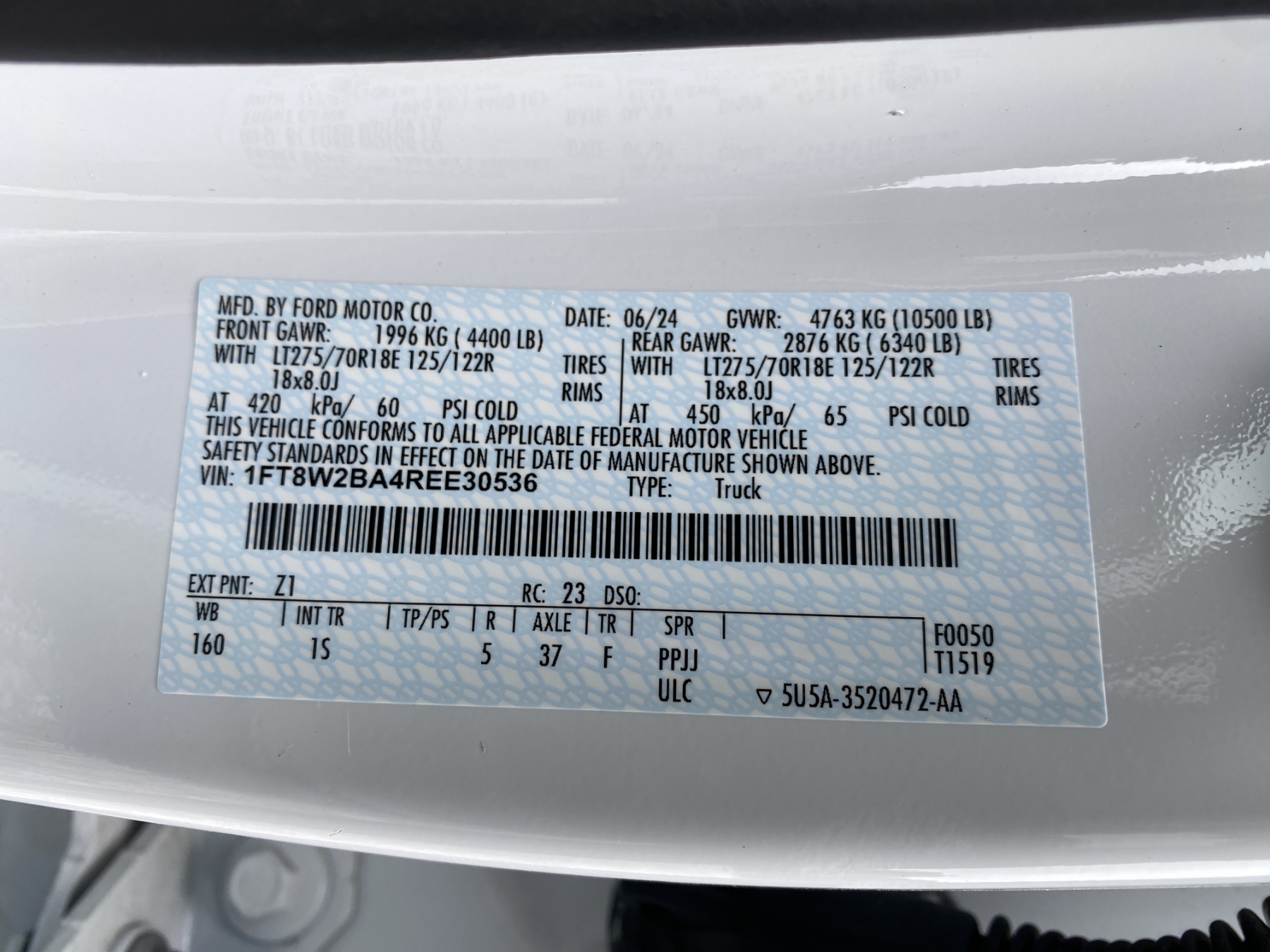 Vehicle ID Number: 1FT8W2BA4REE30536