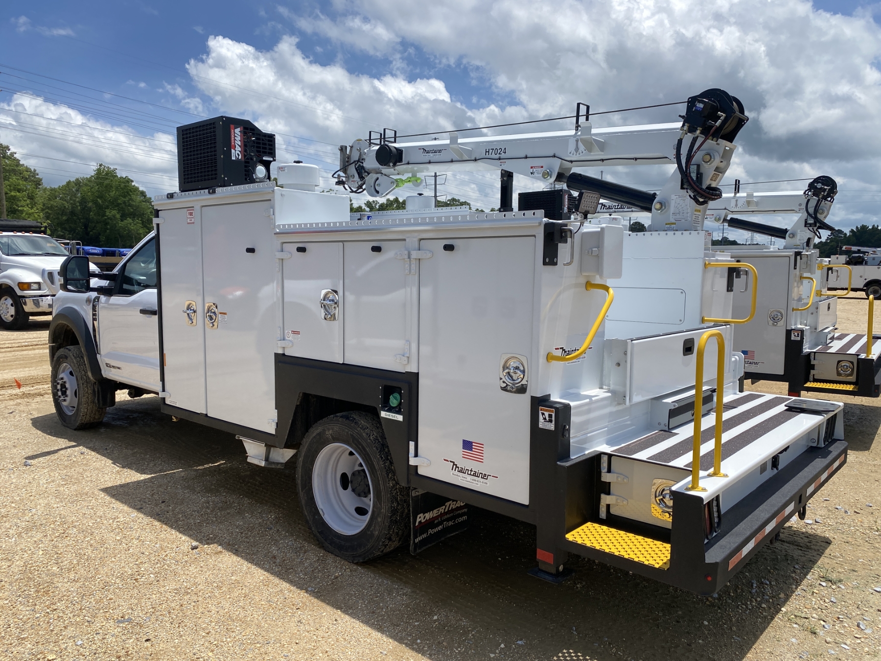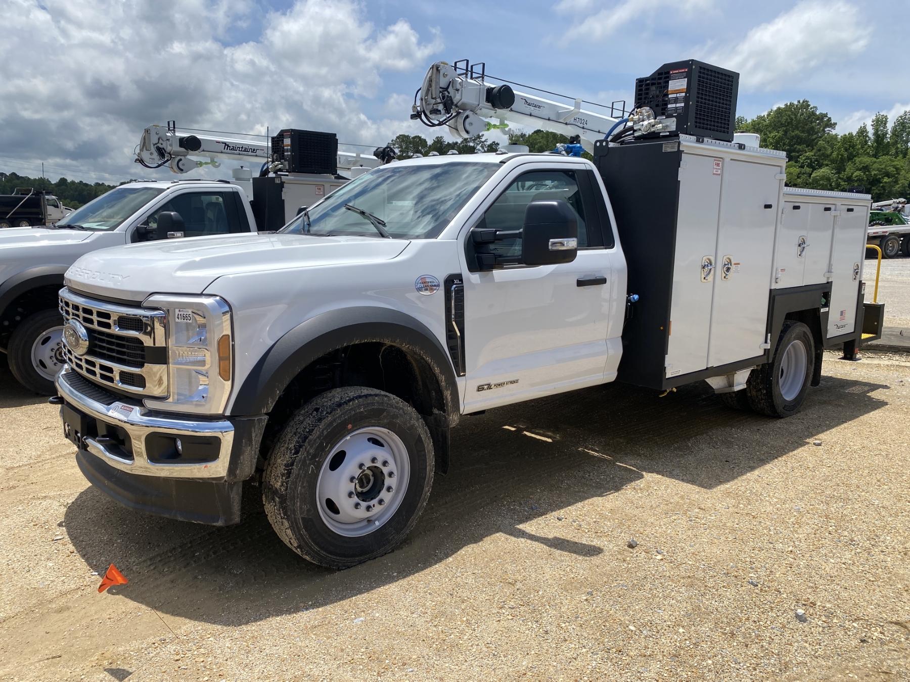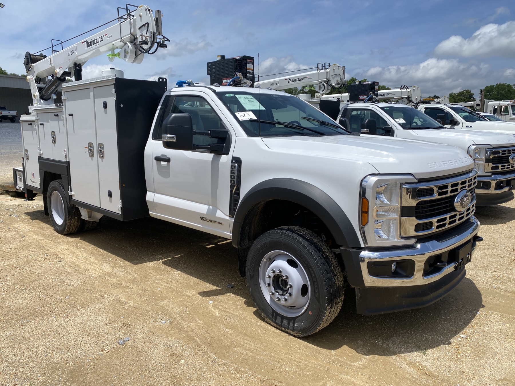 4x4, Power Stroke diesel, A/T, Maintainer MTS-1-084 body, Maintainer H7024 7,000 lb. hyd crane, wireless remote, 22,000 GVW, (3) 50 gallon oil tanks, hyd rear outriggers, VMac H450 air compressor, Oxygen/Act. bottle compartment, ext light package, workbench bumper, power windows, (New/Unused)