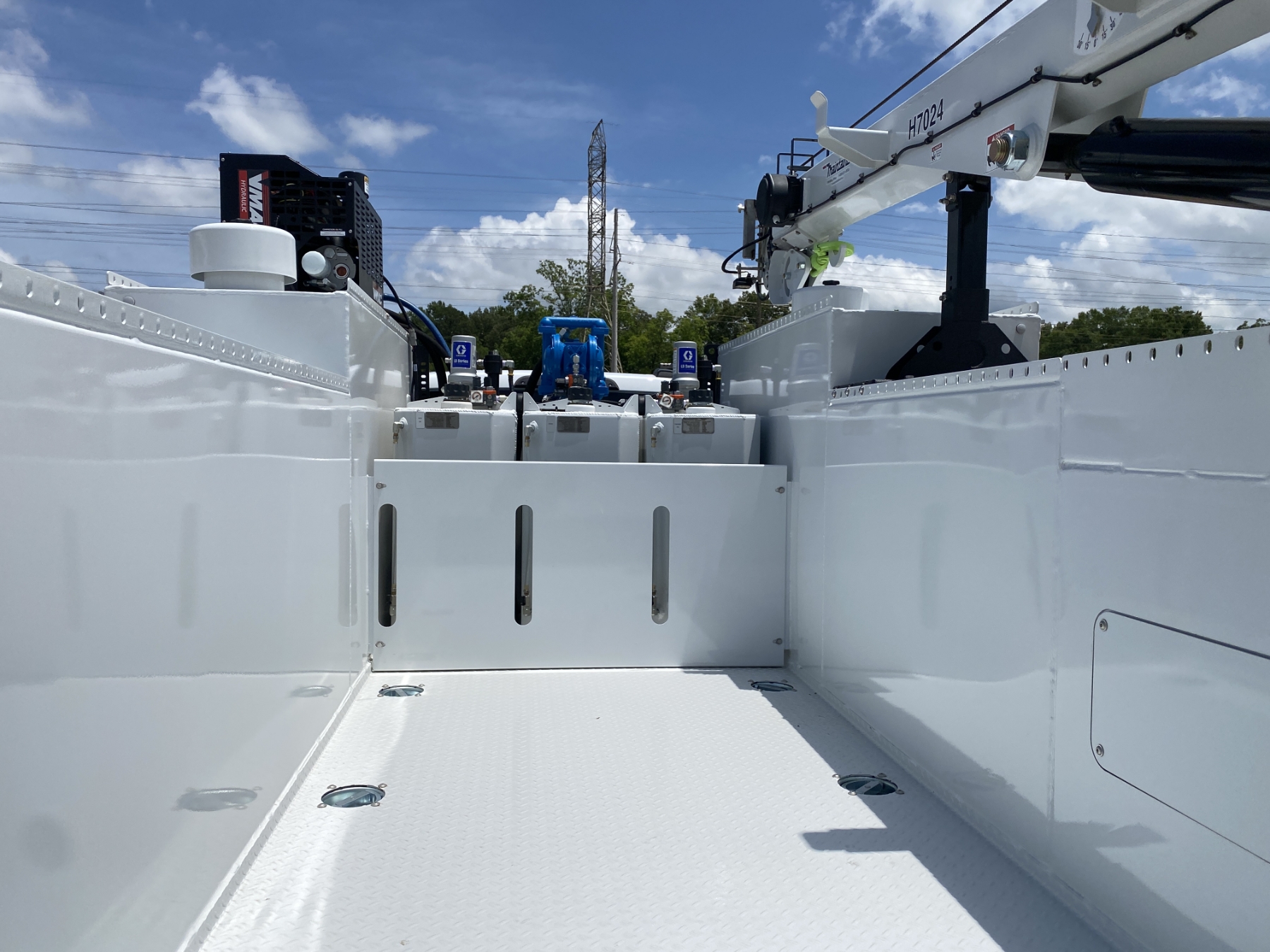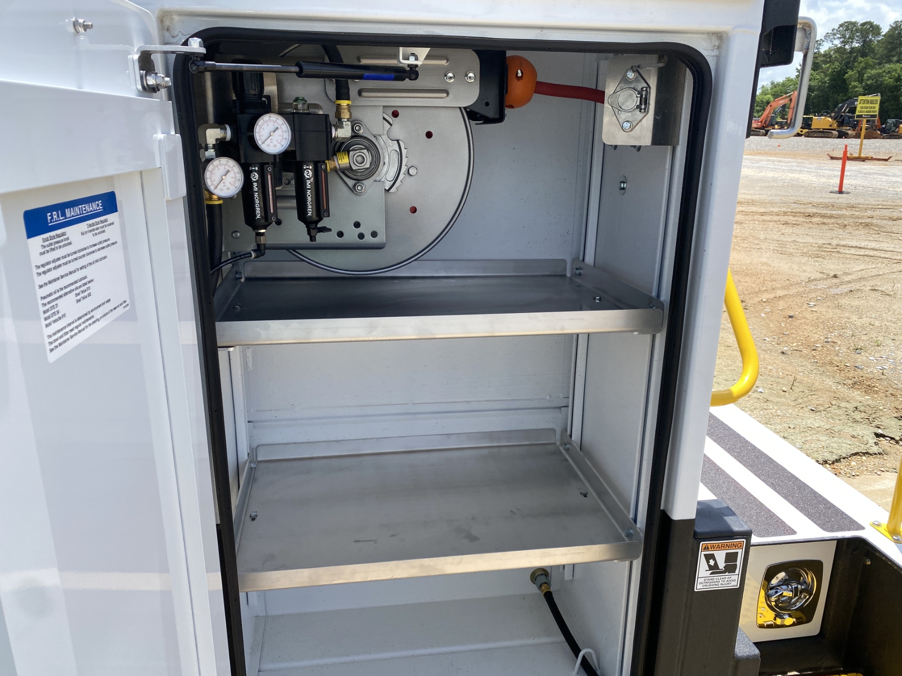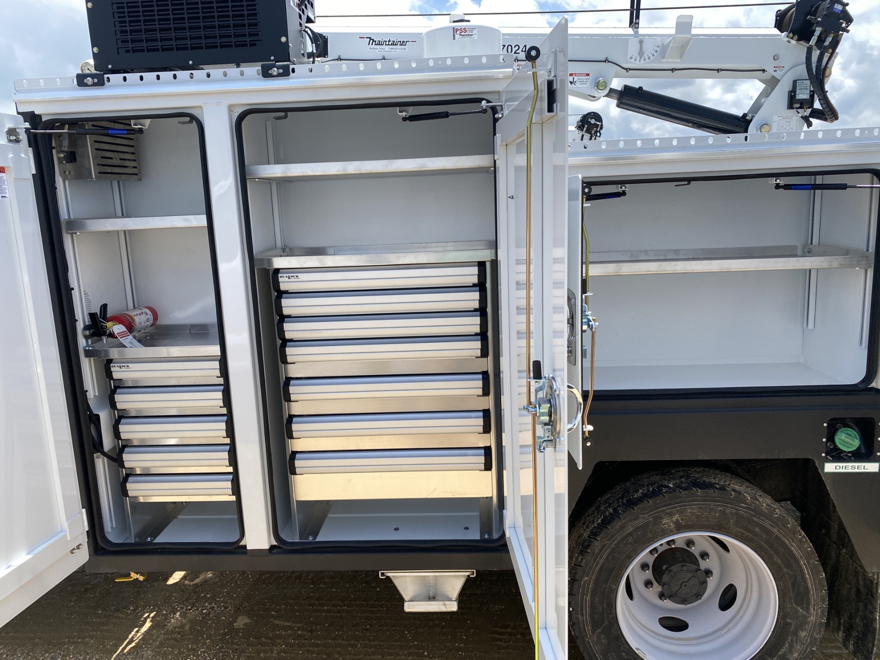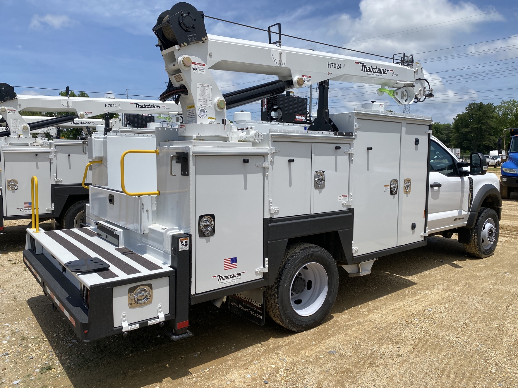 4x4, Power Stroke diesel, A/T, Maintainer MTS-1-084 body, Maintainer H7024 7,000 lb. hyd crane, wireless remote, 22,000 GVW, (3) 50 gallon oil tanks, hyd rear outriggers, VMac H450 air compressor, Oxygen/Act. bottle compartment, ext light package, workbench bumper, power windows, (New/Unused)