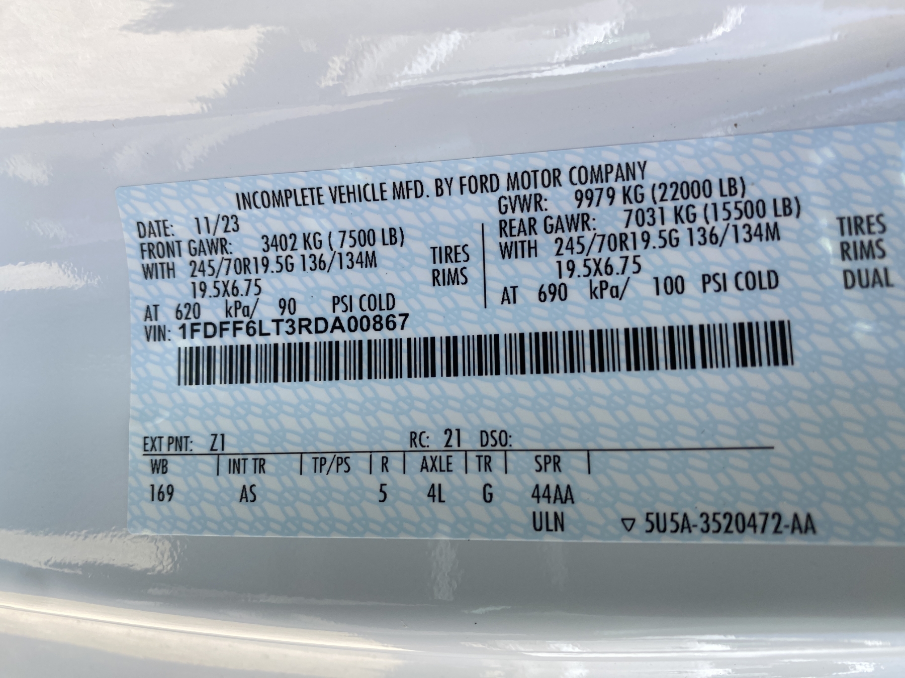 Vehicle ID Number: 1FDFF6LT3RDA00867