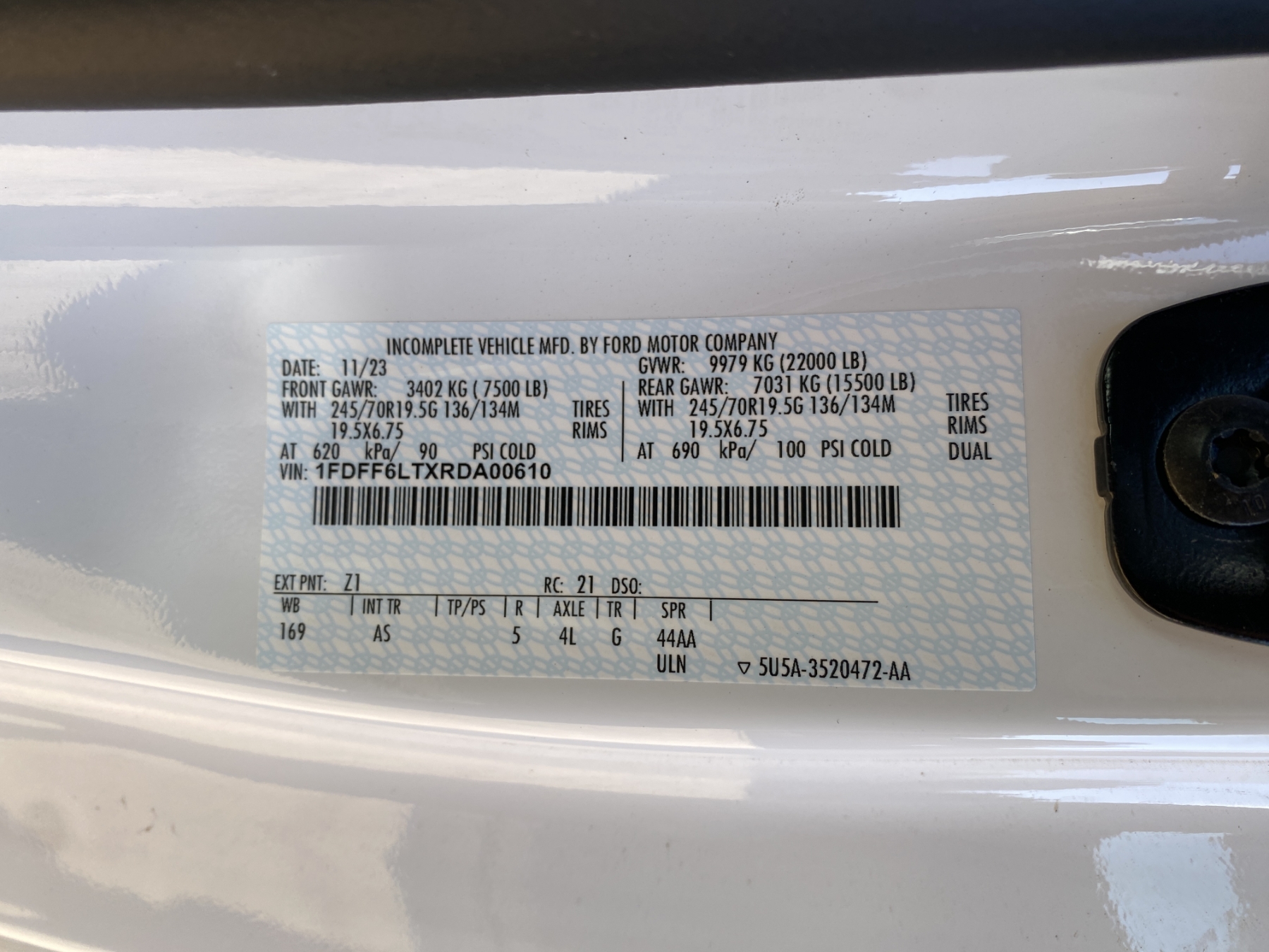 Vehicle ID Number: 1FDFF6LTXRDA00610