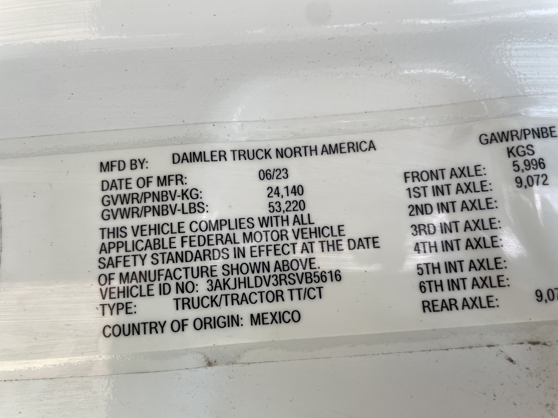 Vehicle ID Number: 3AKJHLDV3RSVB5616