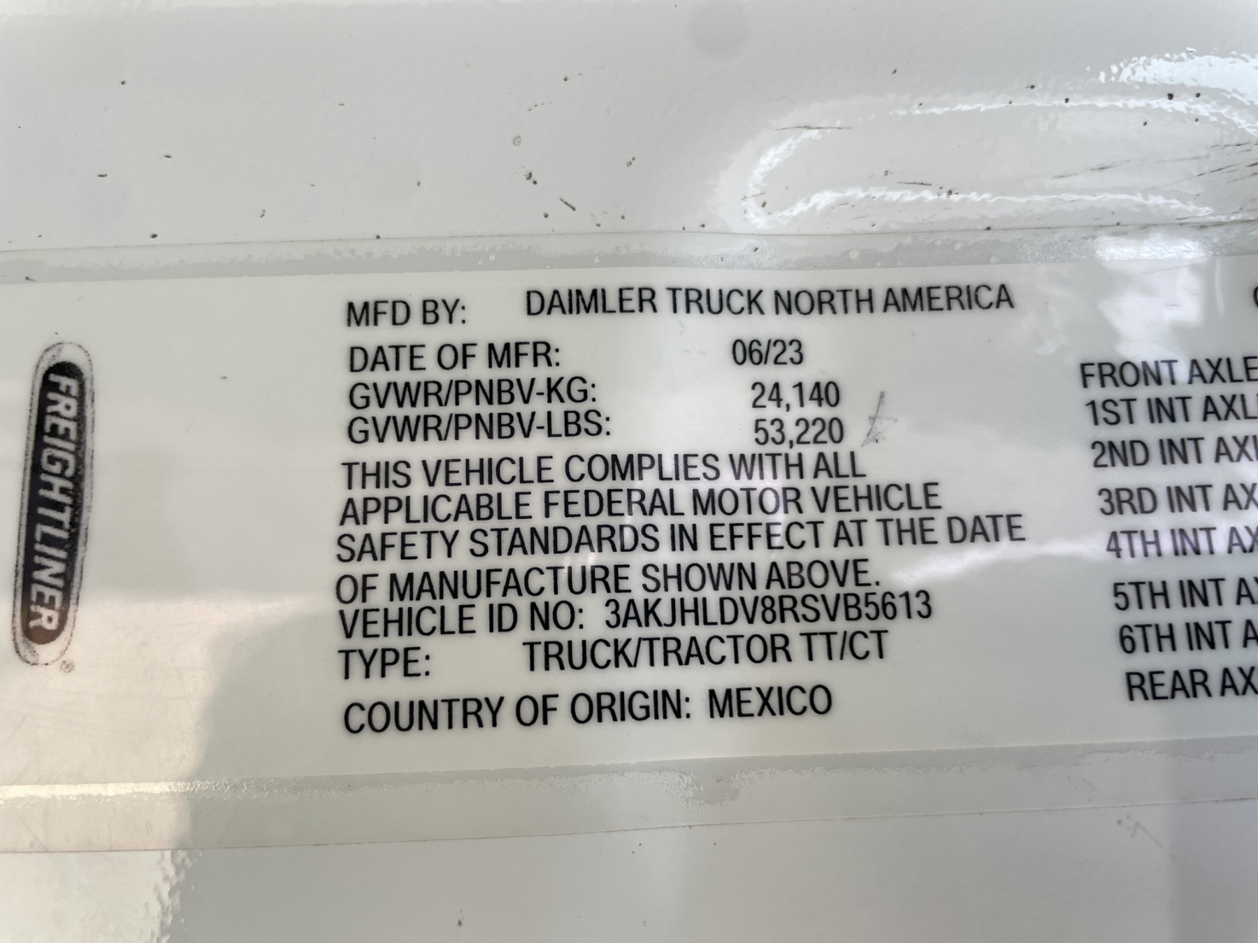 Vehicle ID Number: 3AKJHLDV8RSVB5613
