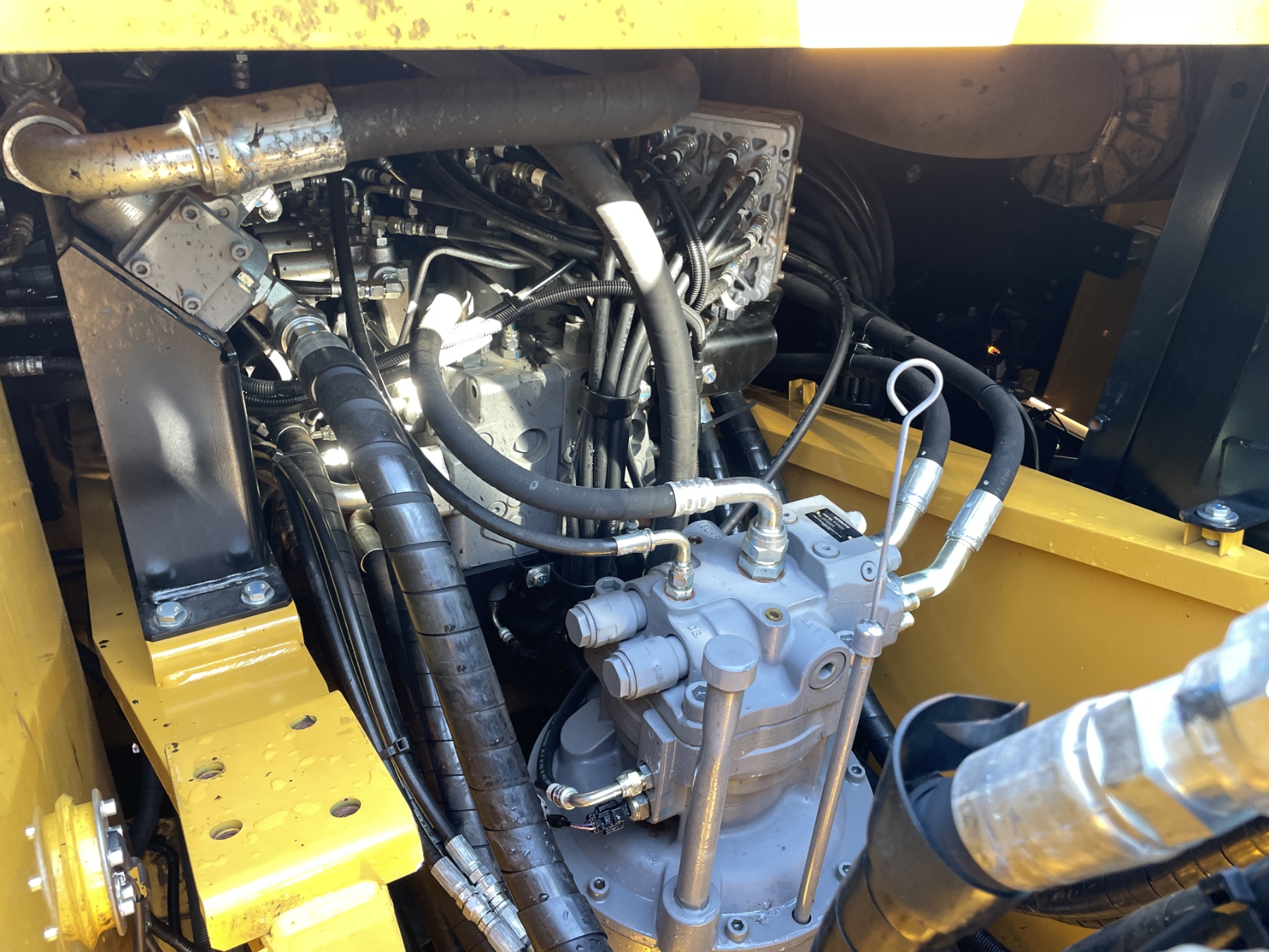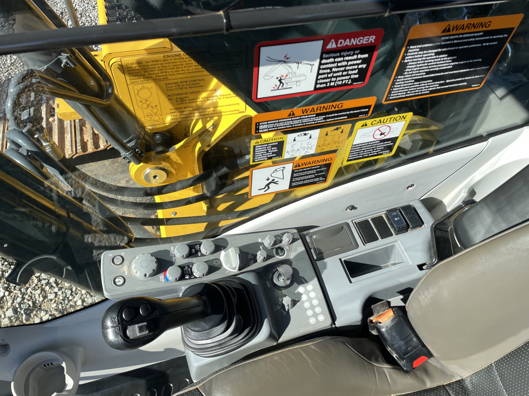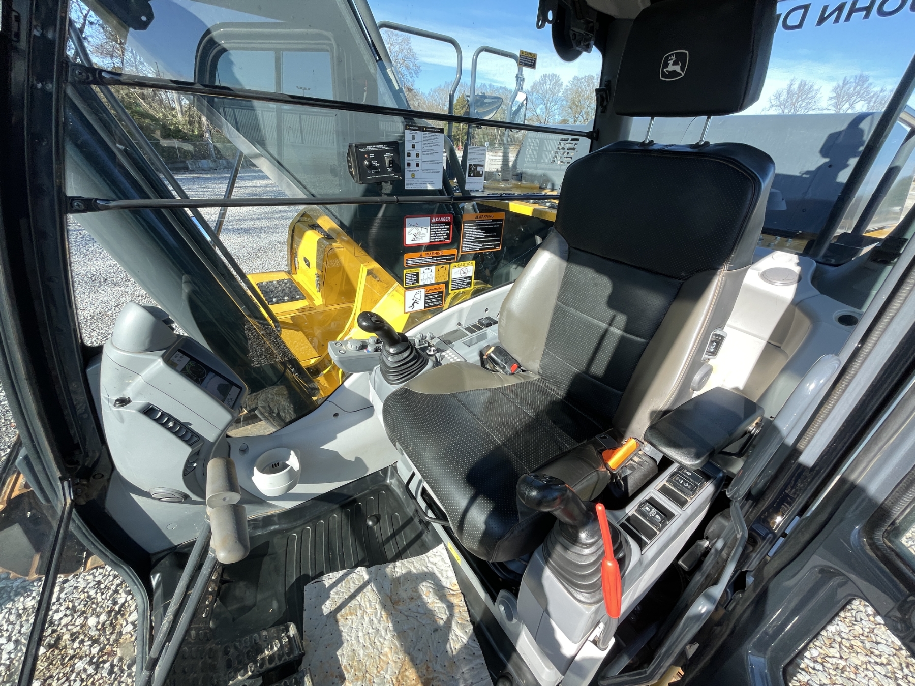 9' 9" stick, 48" bucket, coupler, aux hyd, cab, A/C