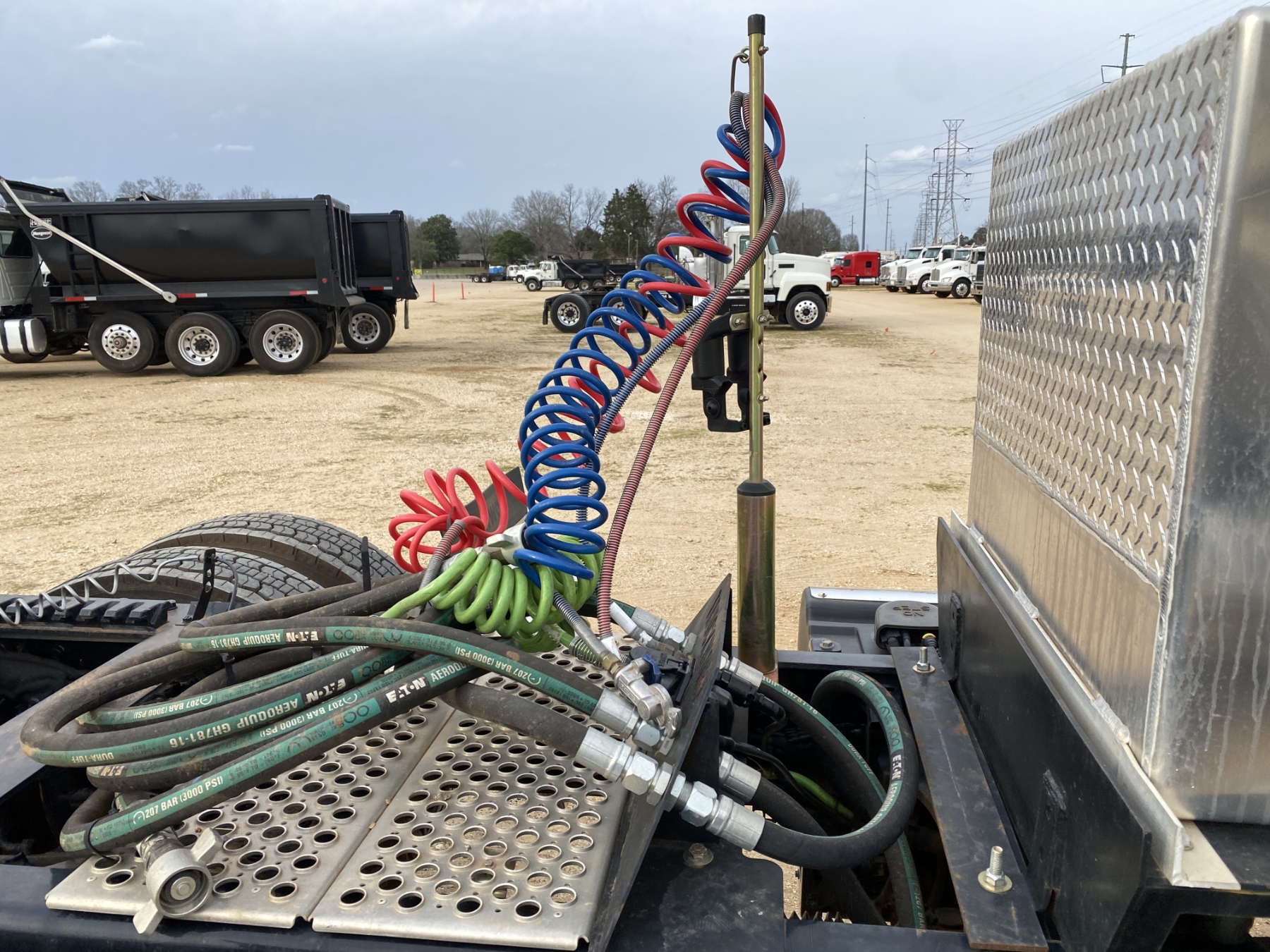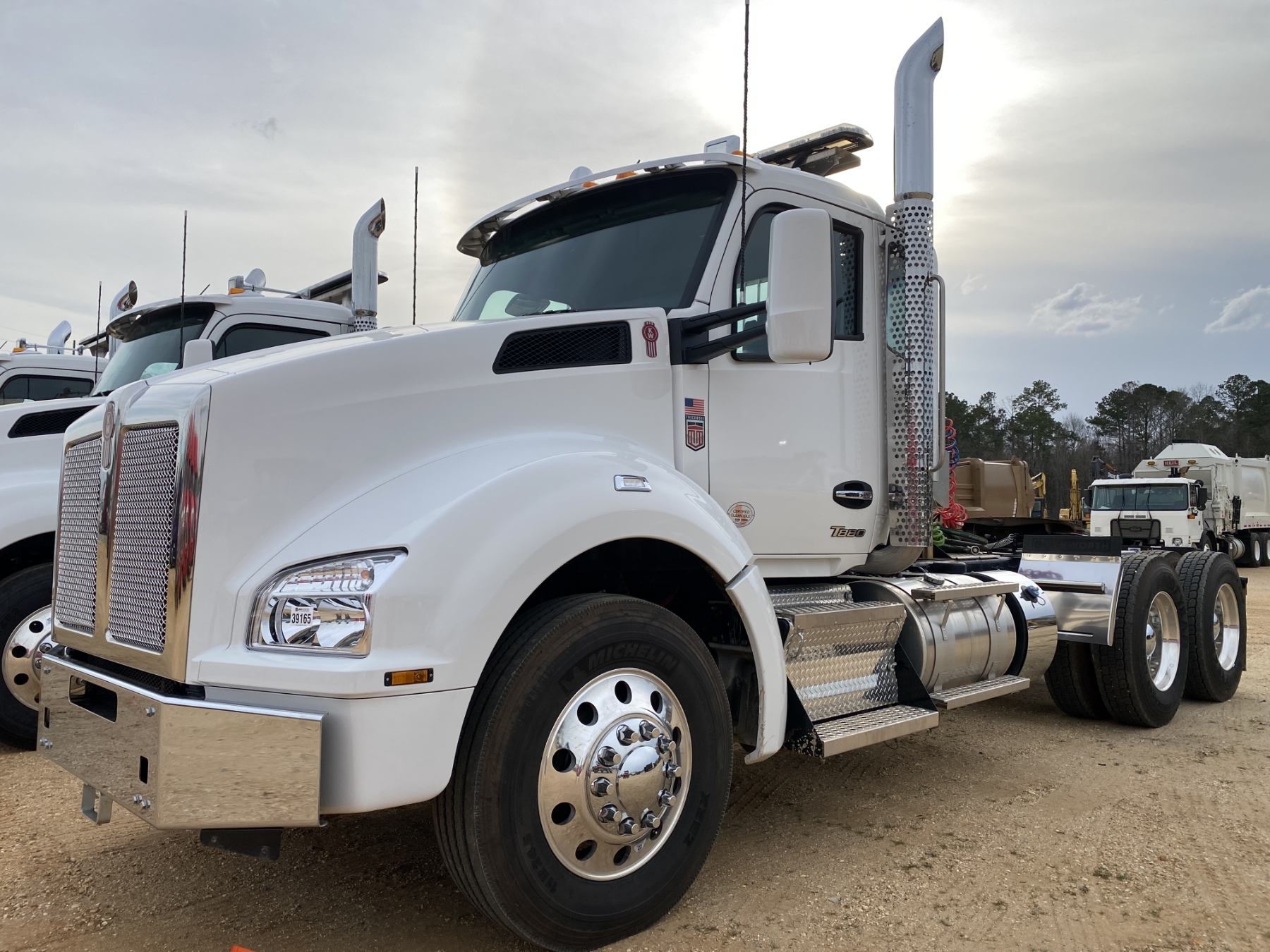 T/A, 510 HP Paccar MX-13 engine, Eaton 18 speed A/T, 46K rears, air ride, 13,200 lb. front, 215" W/B, wet kit, alum headache rack, 11R24.5 tires, all alum
