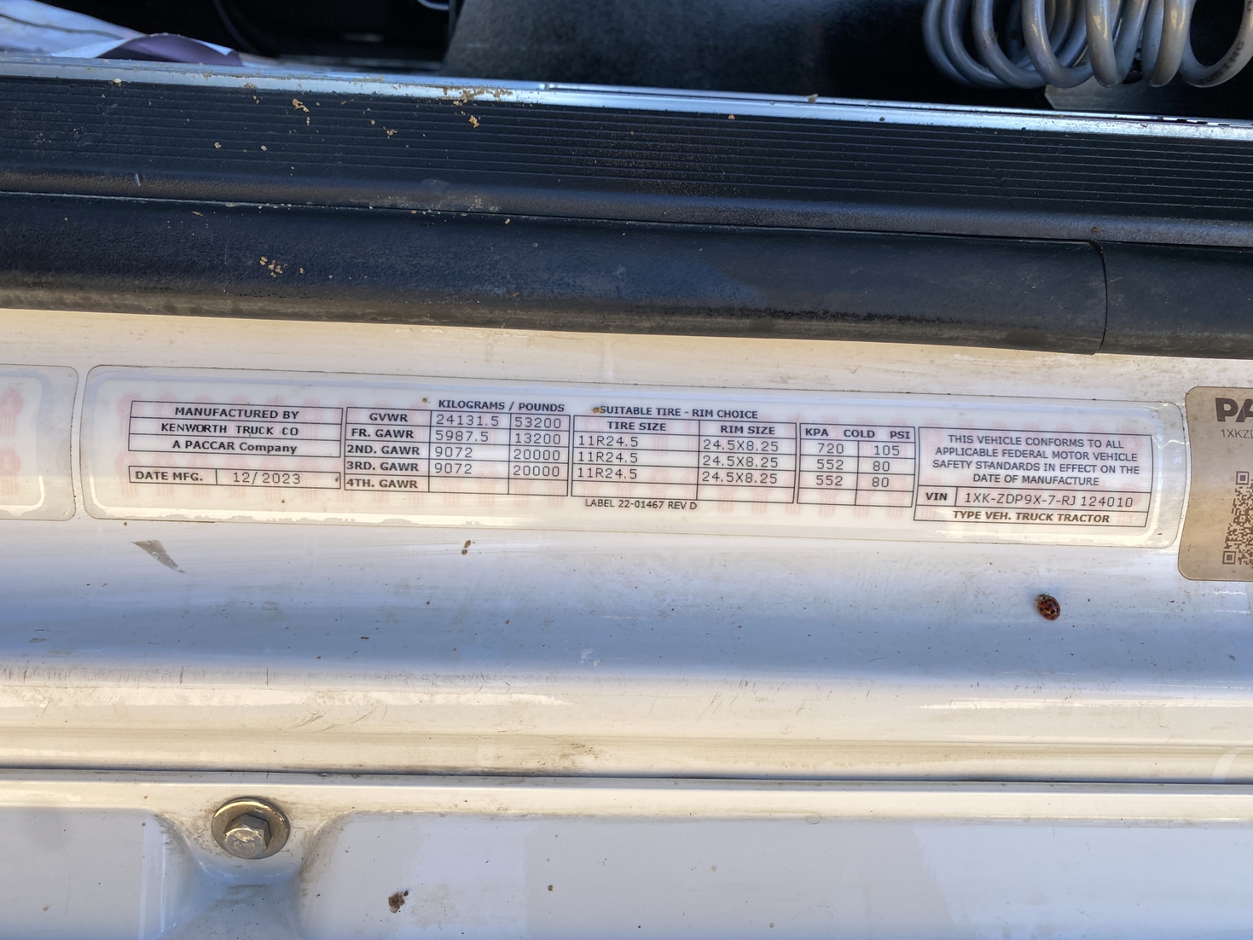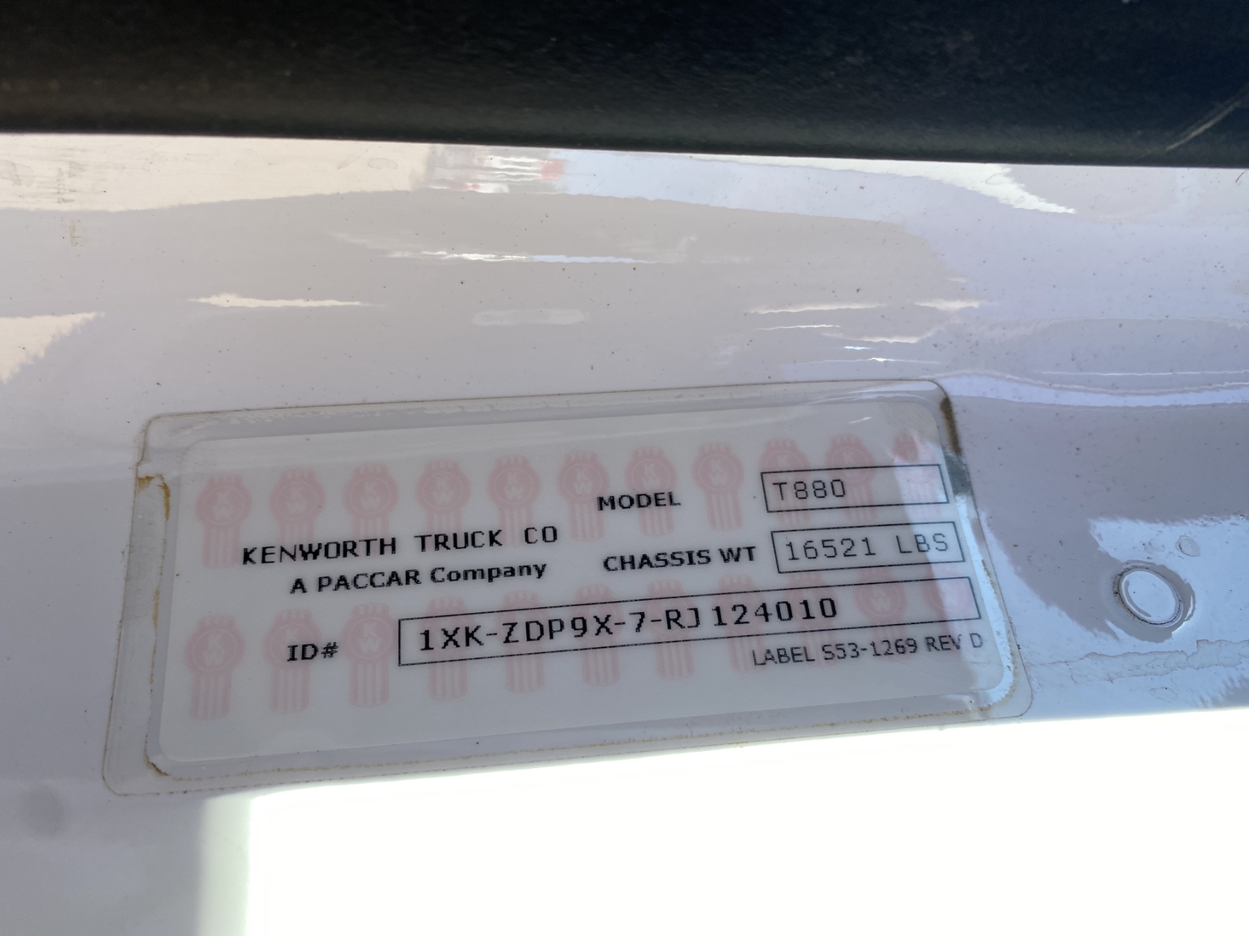 Vehicle ID Number: 1XKZDP9X7RJ124010