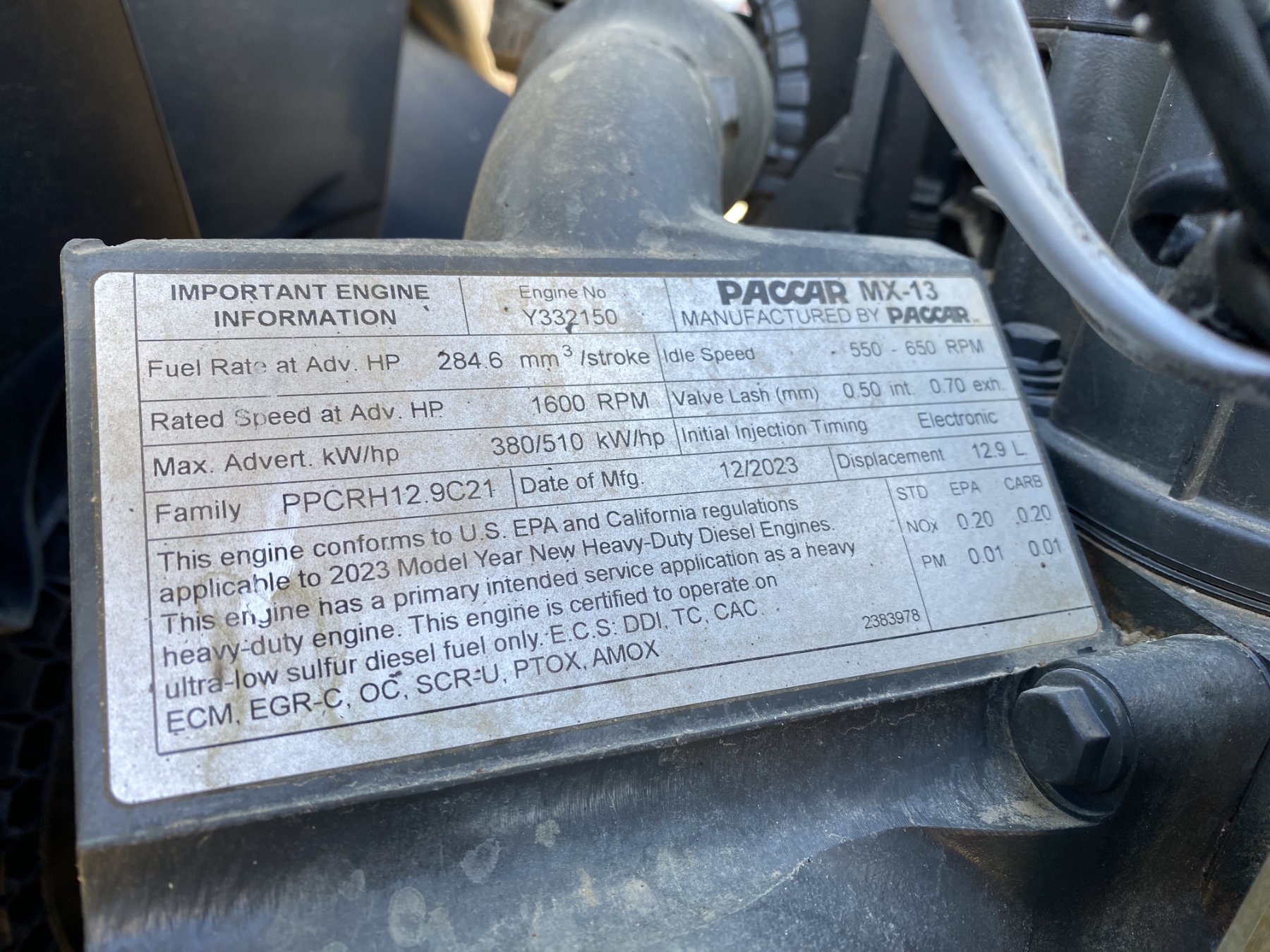 T/A, 510 HP Paccar MX-13 engine, Eaton A/T, 40K rears, air ride, 13,200 lb. front, 210" W/B, 11R24.5 tires, all alum
