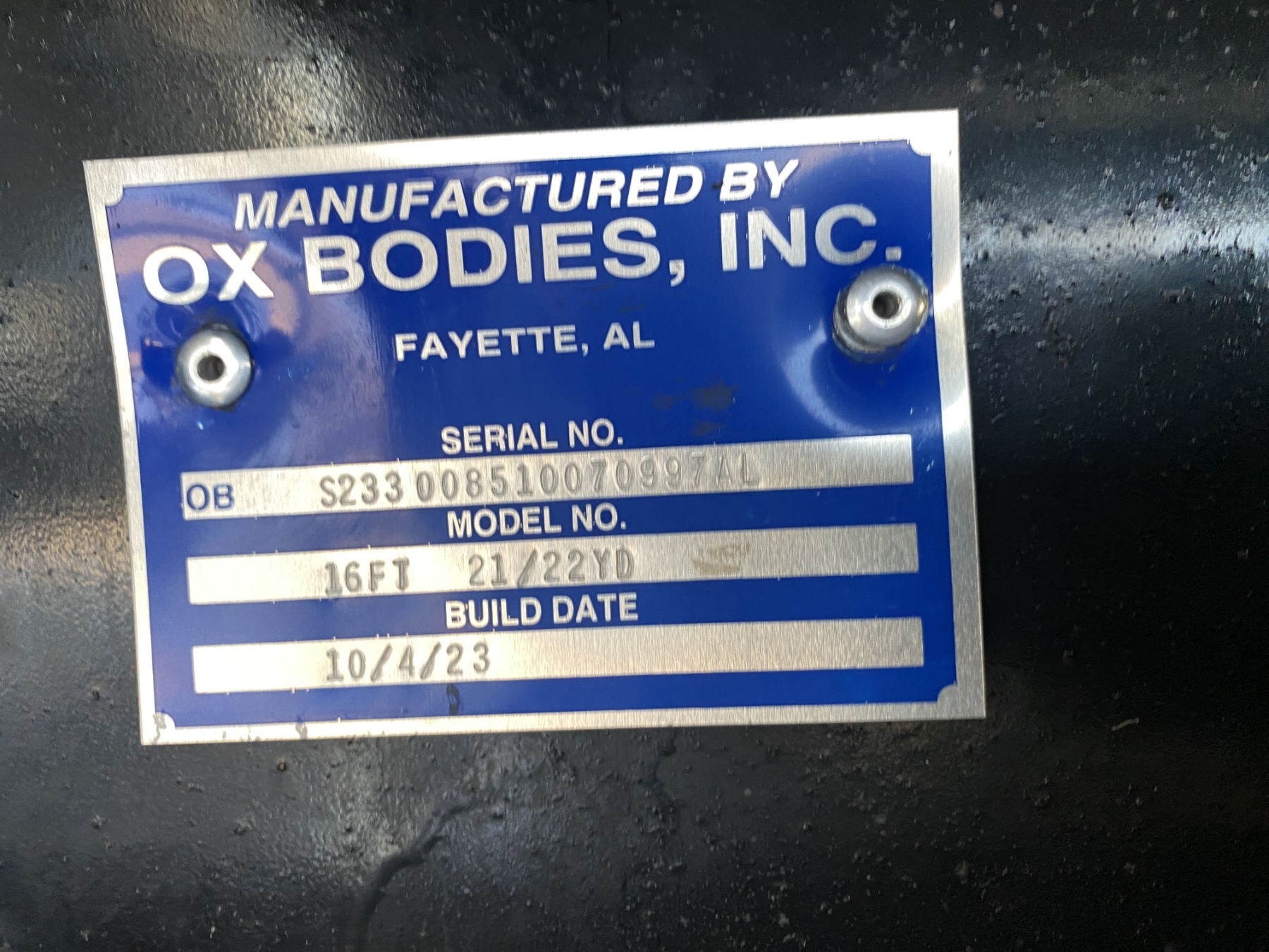 Tri Axle, 500 HP Cummins X15 engine, Allison 4500 RDS A/T, 46K rears, 20K front, 16' Hard Ox body (S/N: S233008510070997AL), 11R24.5 rear tires, 425/6R22.5 front tires