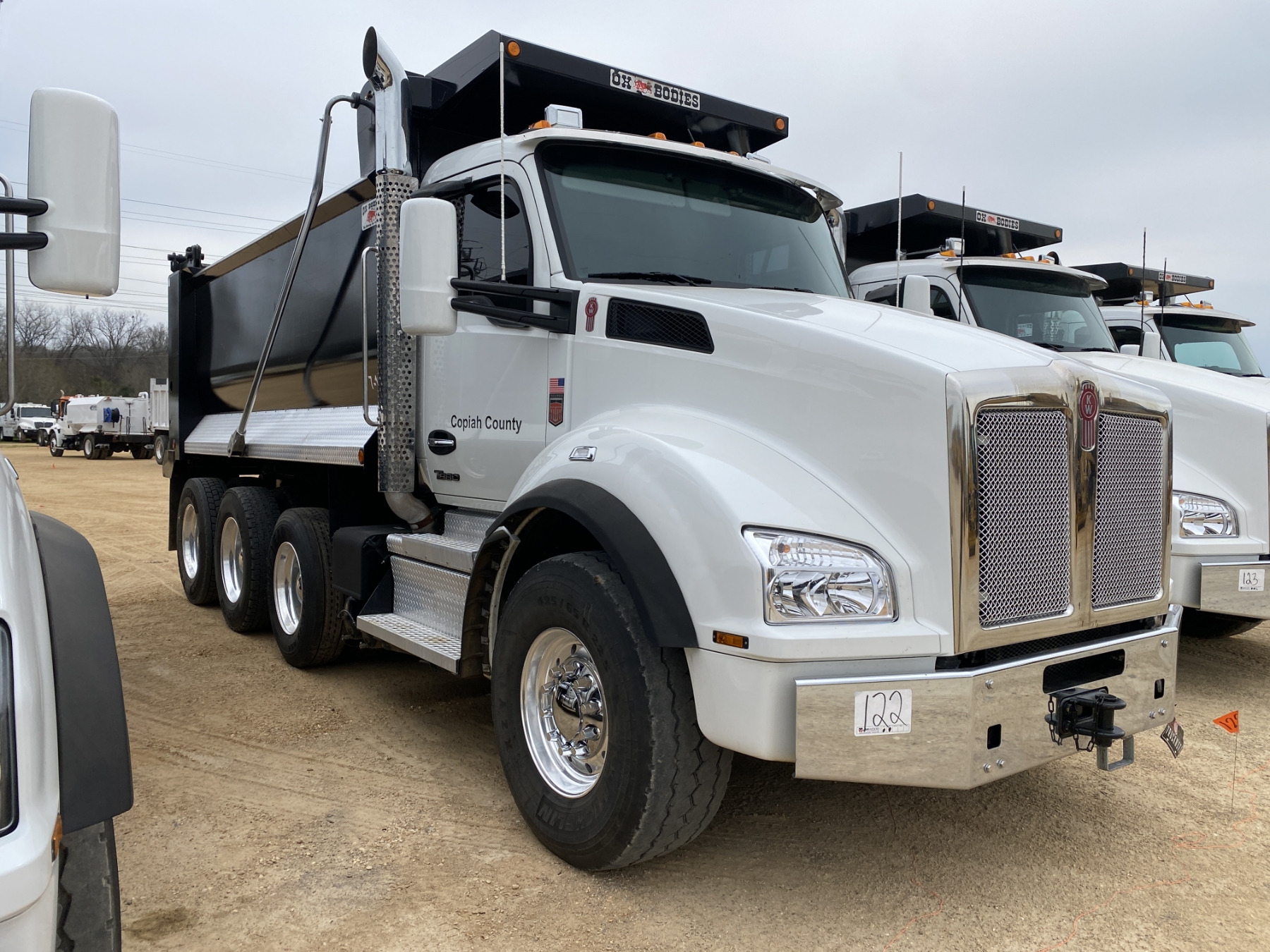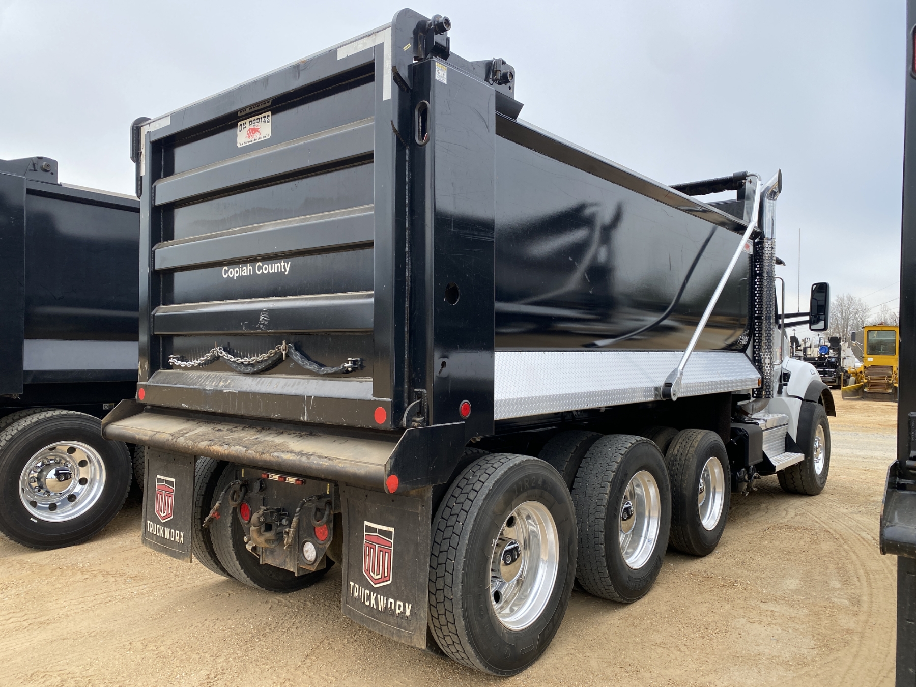 Tri Axle, 500 HP Cummins X15 engine, Allison 4500 RDS A/T, 46K rears, 20K front, 16' Hard Ox body, high-lift gate, 11R24.5 rear tires, 425/65R22.5 front tires
