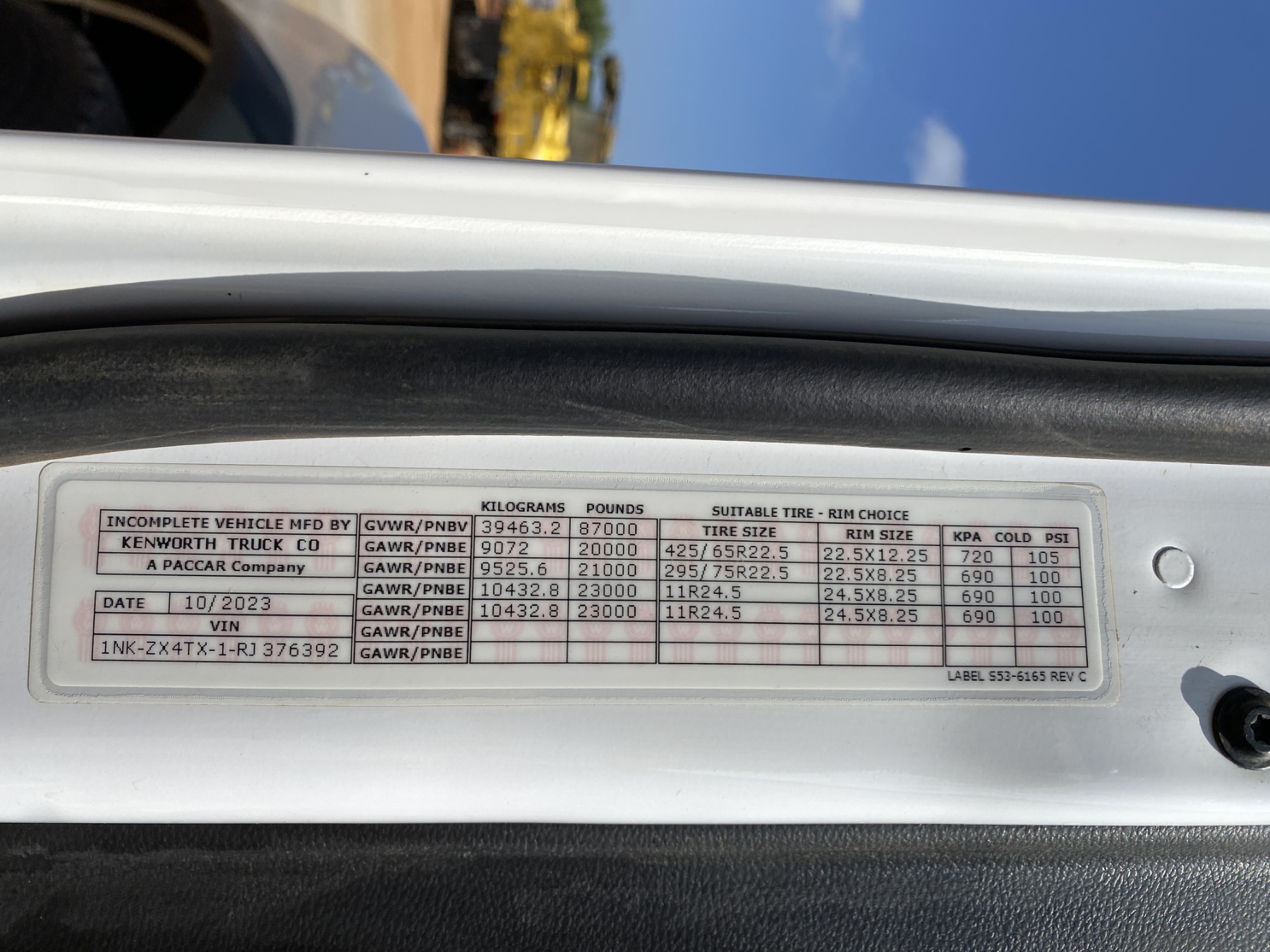 Vehicle ID Number: 1NKZX4TX1RJ376392