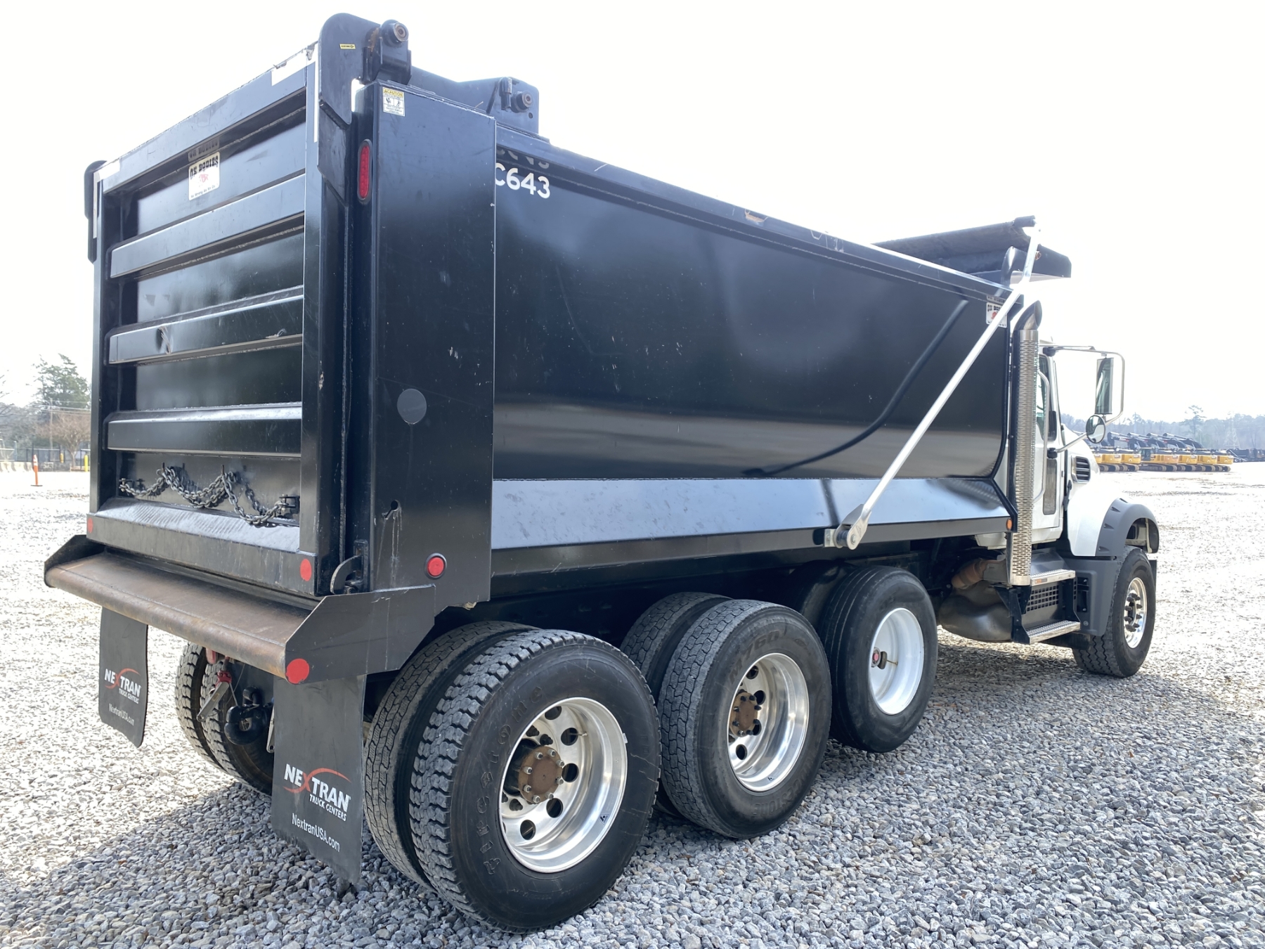 Tri Axle, 455 HP Mack MP8 engine, Allison 4500 RDS A/T, 46K rears, 20K front, 16' Hard Ox body, high-lift gate, 11R24.5 rear tires, 425/65R22.5 front tires