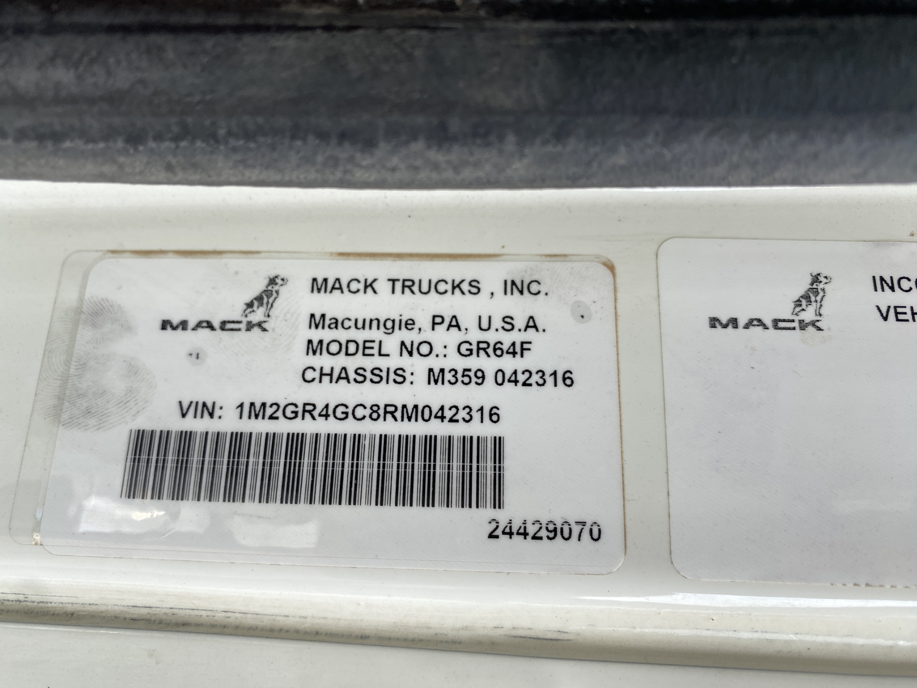 Vehicle ID Number: 1M2GR4GC8RM042316