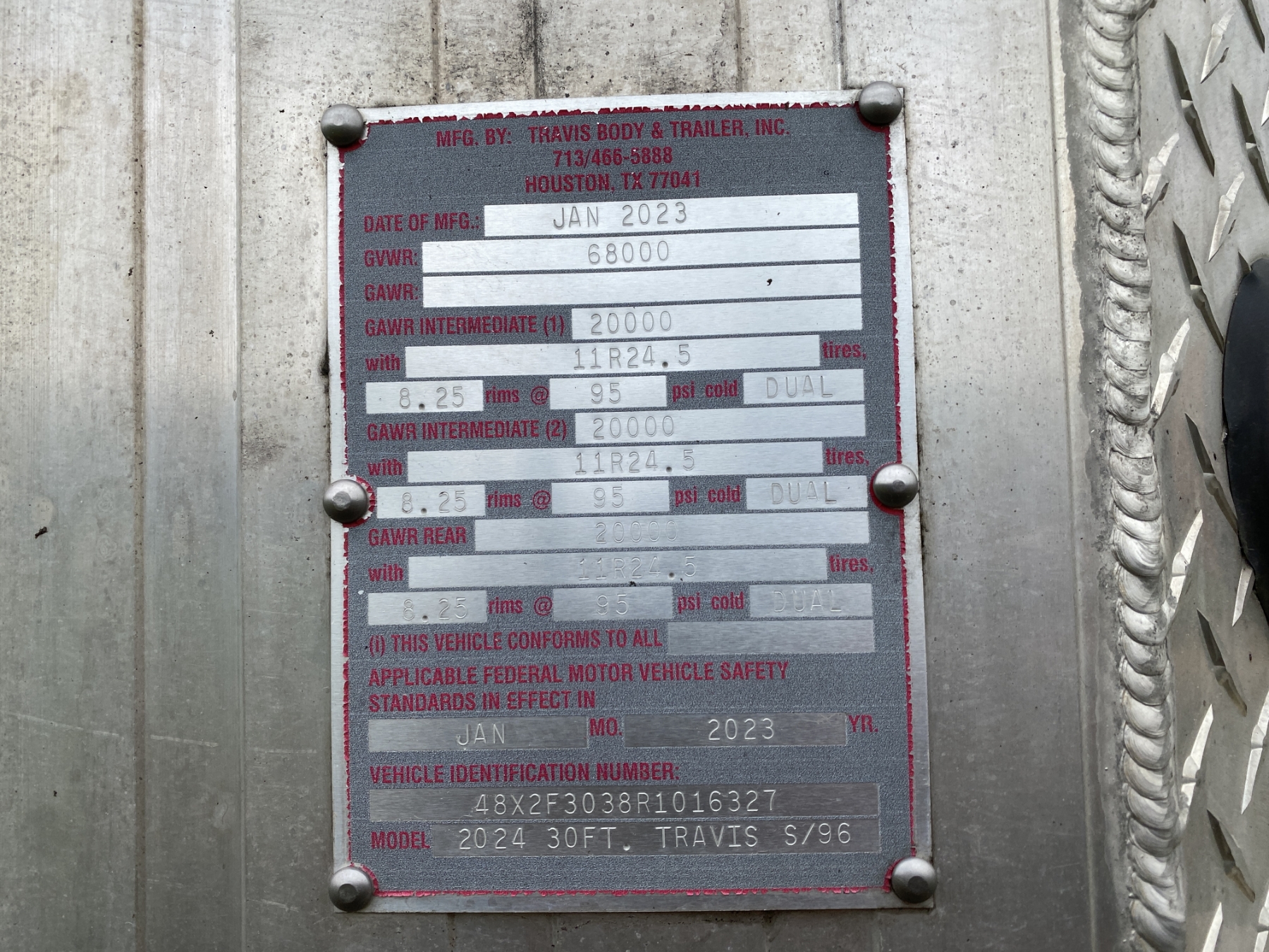 Tri Axle, 30' length, frameless, aluminum, 11R24.5 tires, all alum