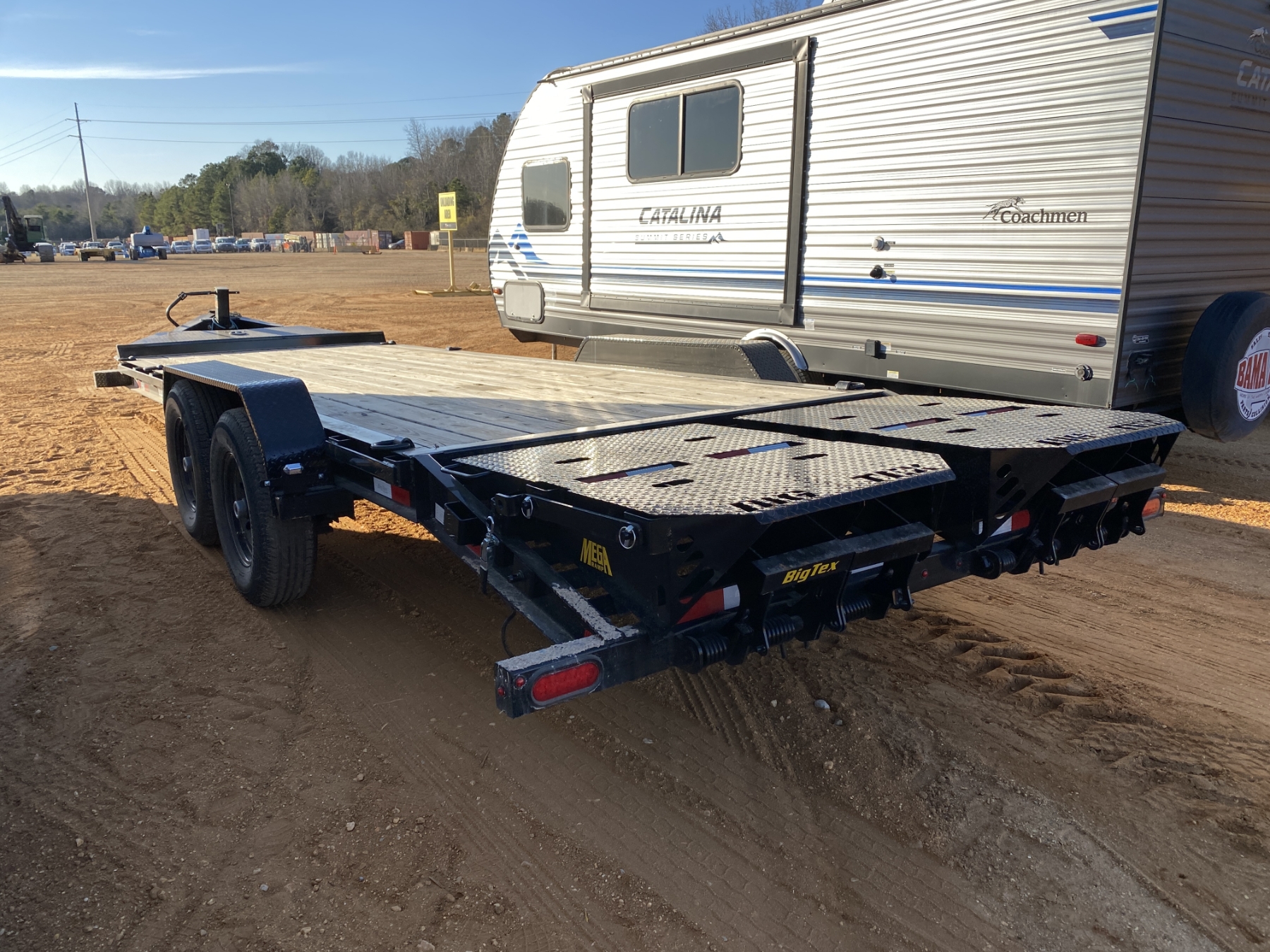 T/A, 22' length, 82" width, dovetail, ramps, (Tongue Damaged)