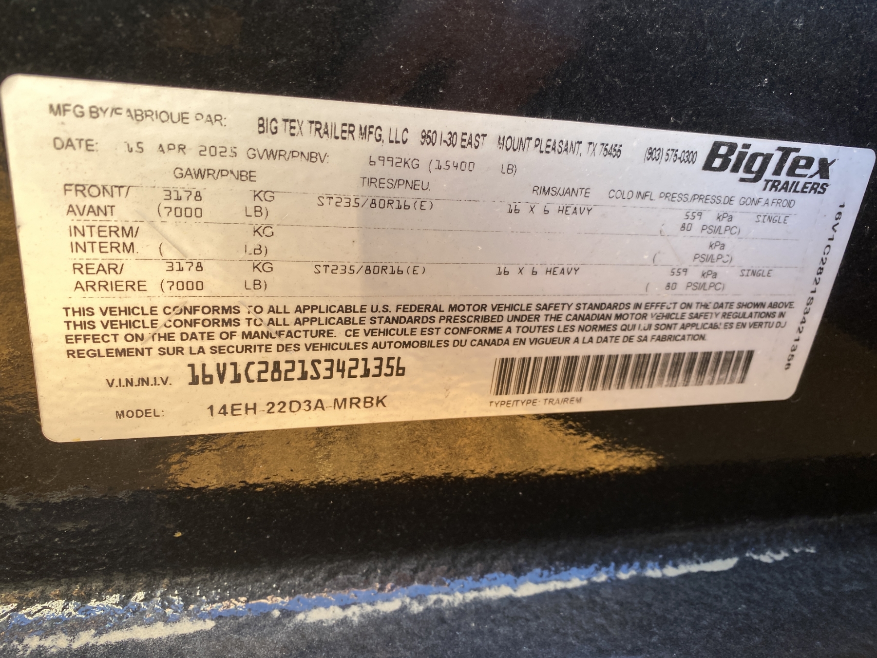2025 BIG TEX 14EH Utility Trailer