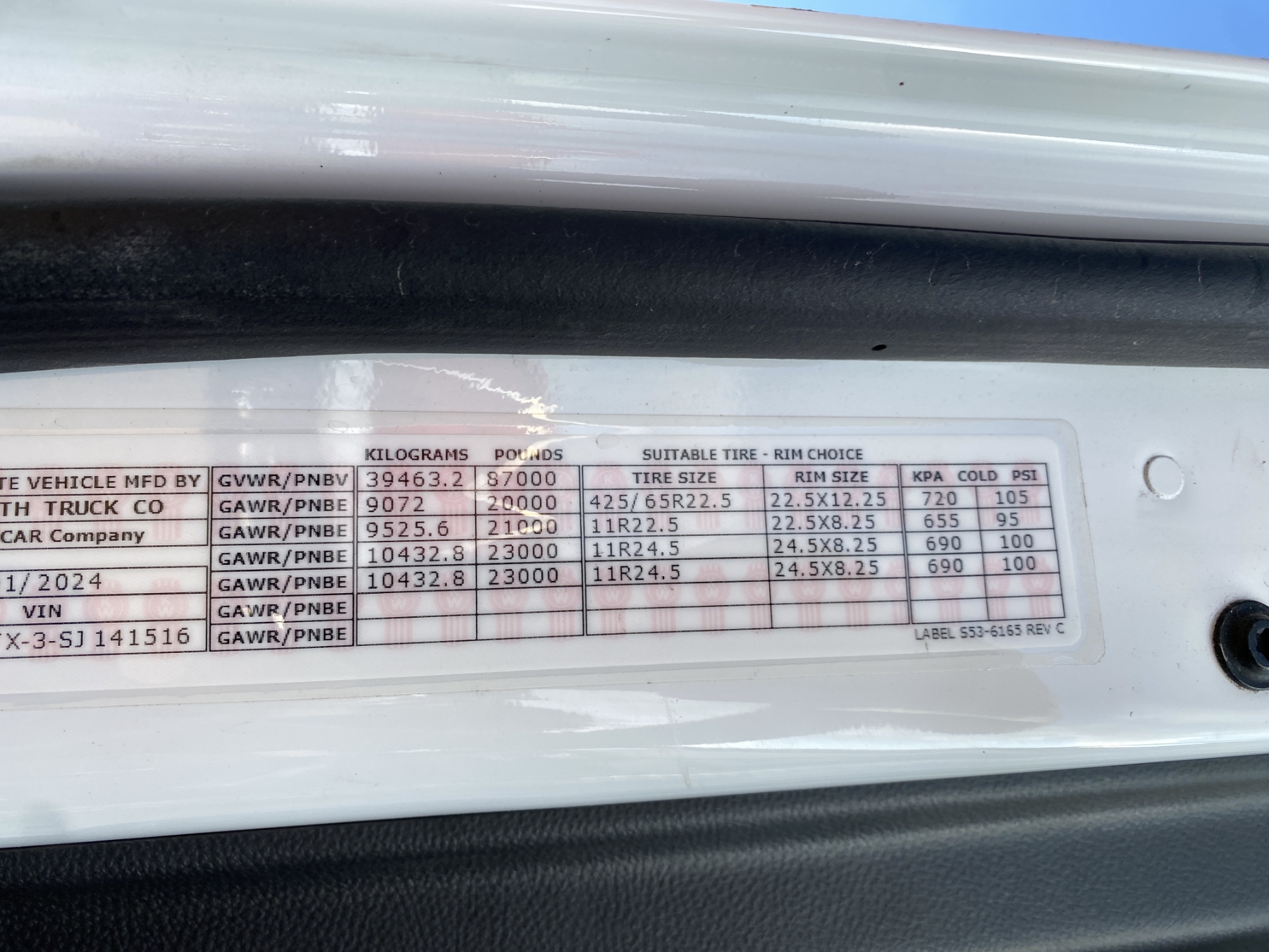 Notes: (BASE WARR: EMISSIONS - 5YR/100K MI - EPA ENGINE TIL 3/6/29 / BASE WARR: PACCAR MX ENGINE 24 MONTHS/250K MI/400K KM/6250 HRS TIL 3/6/26)