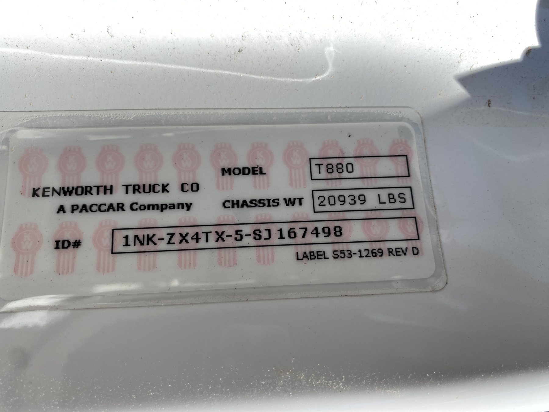 Vehicle ID Number: 1NKZX4TX5SJ167498