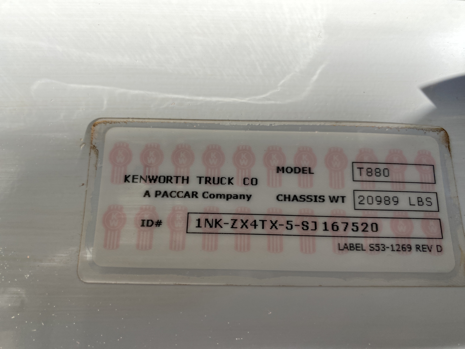 Vehicle ID Number: 1NKZX4TX5SJ167520