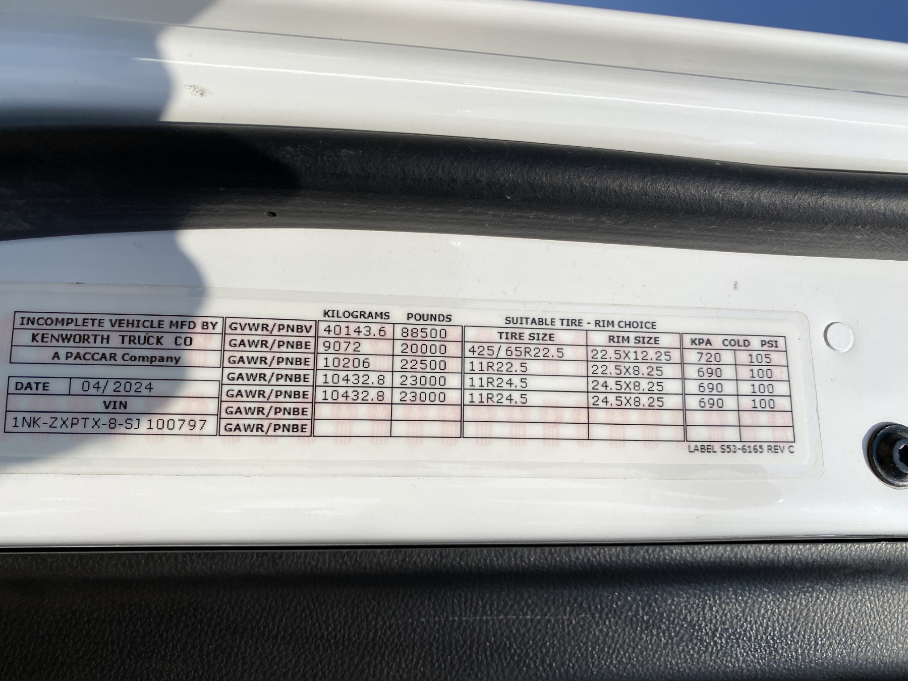 Vehicle ID Number: 1NKZXPTX8SJ100797