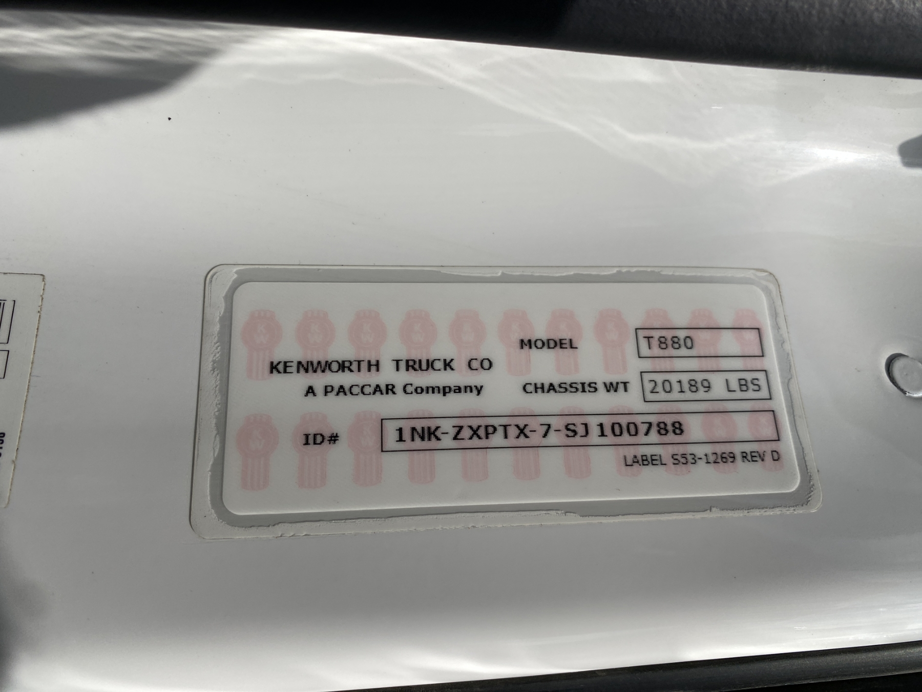 Vehicle ID Number: 1NKZXPTX7SJ100788