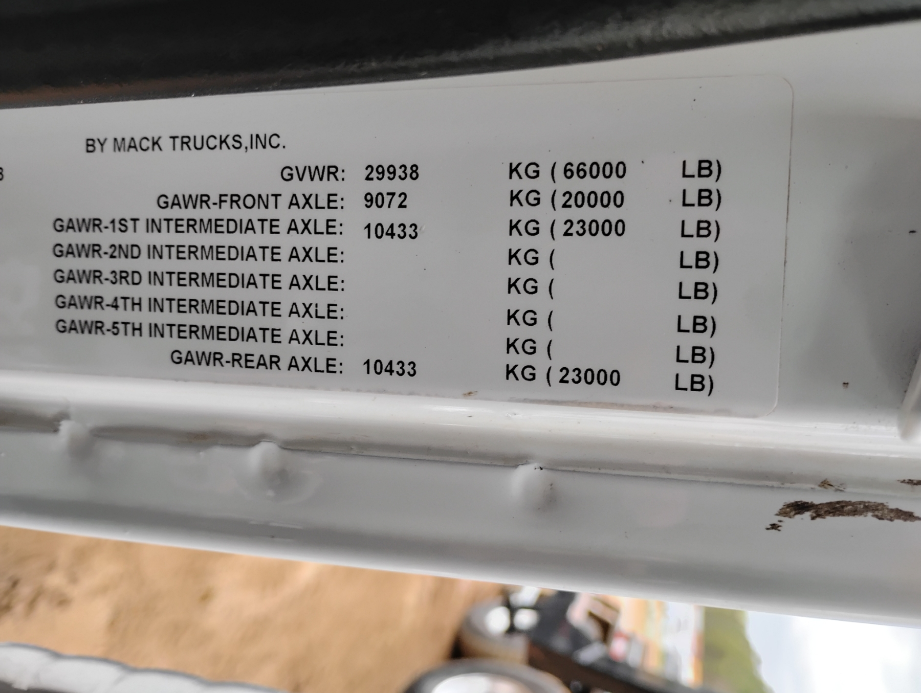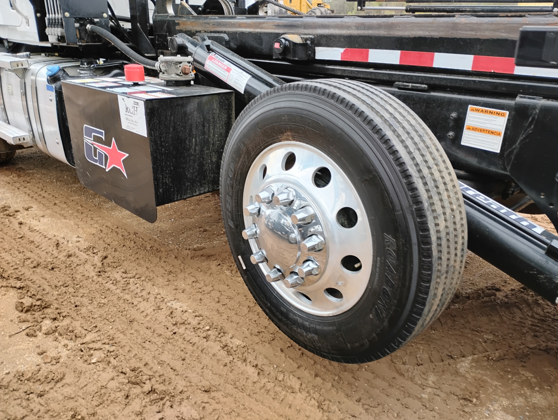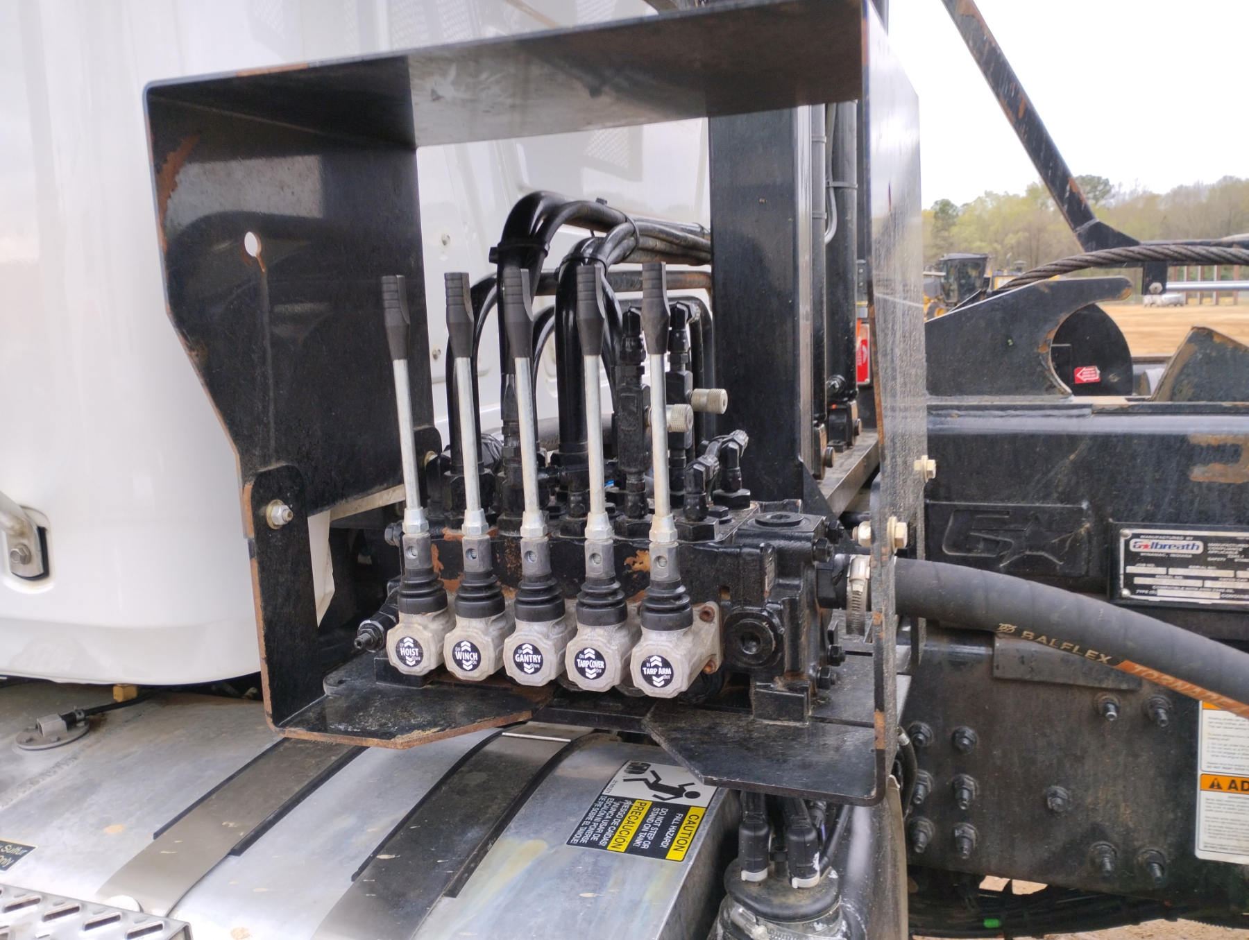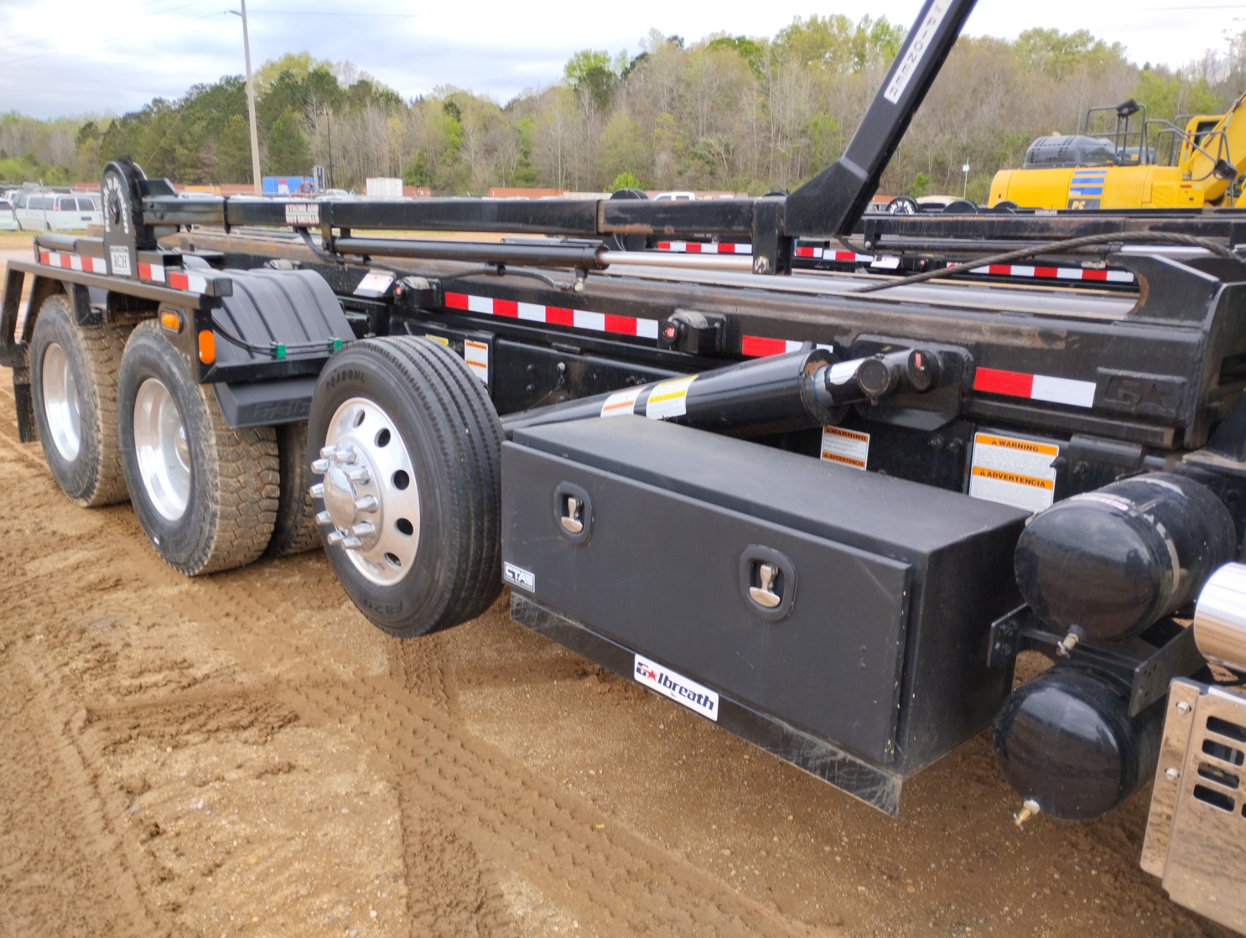 Tri Axle, Mack MP7 engine, Allison A/T, 46K rears, 20K front, Galbreath 75K hoist, Vulcan V320 Scales, 315/80R22.5 rear tires, 425/65R22.5 front tires, all alum