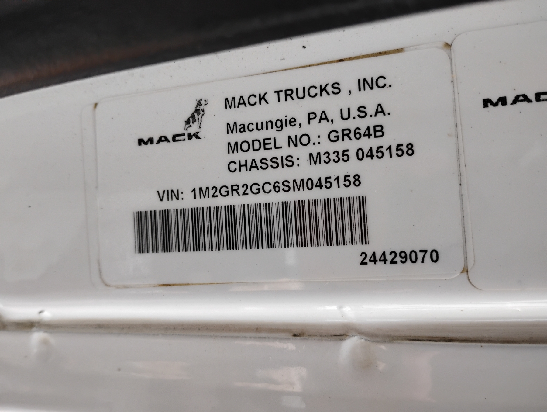 Vehicle ID Number: 1M2GR2GC6SM045158