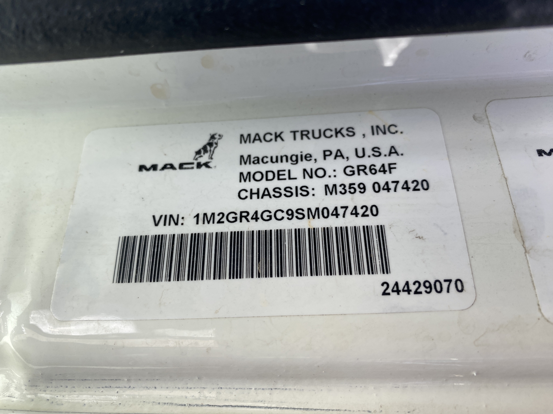 Vehicle ID Number: 1M2GR4GC9SM047420