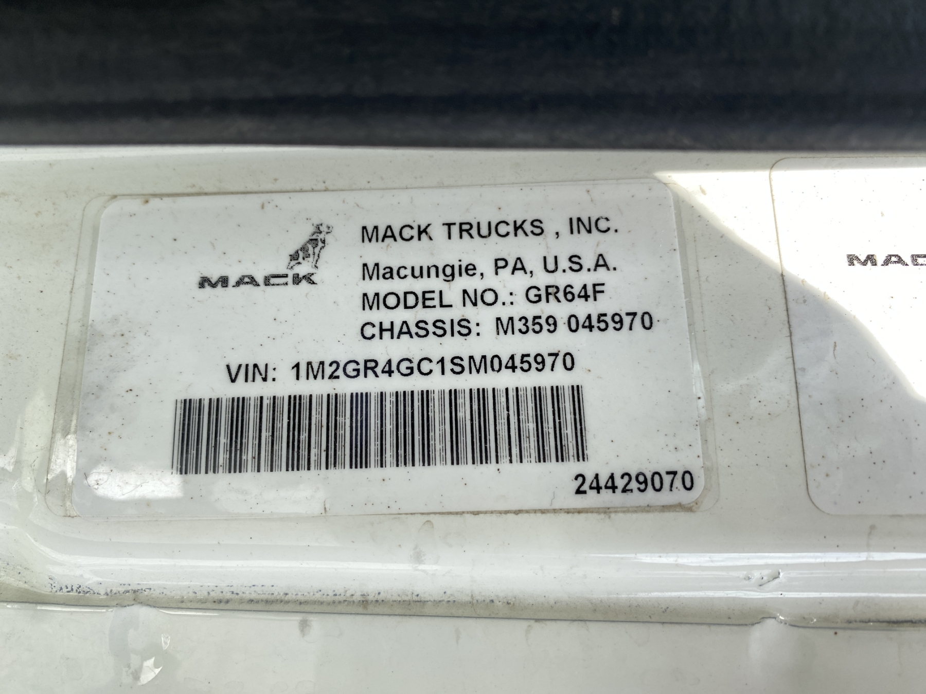 Vehicle ID Number: 1M2GR4GC1SM045970