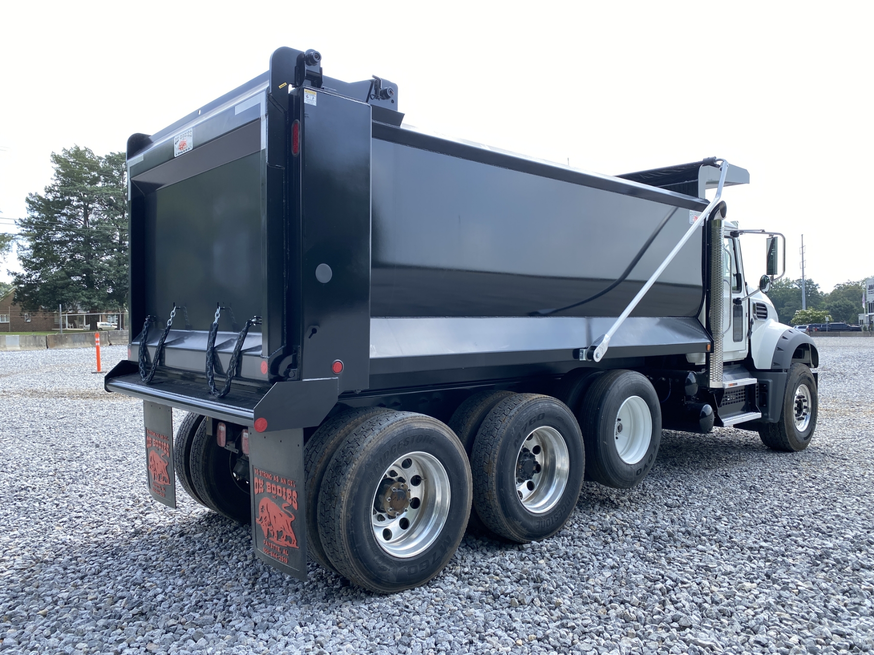 Tri Axle, 455 HP Mack MP8 engine, Allison 4500 RDS A/T, 46K rears, 20K front, (New) 16' Hard Ox body, high-lift gate, 11R24.5 rear tires, 425/65R22.5 front tires