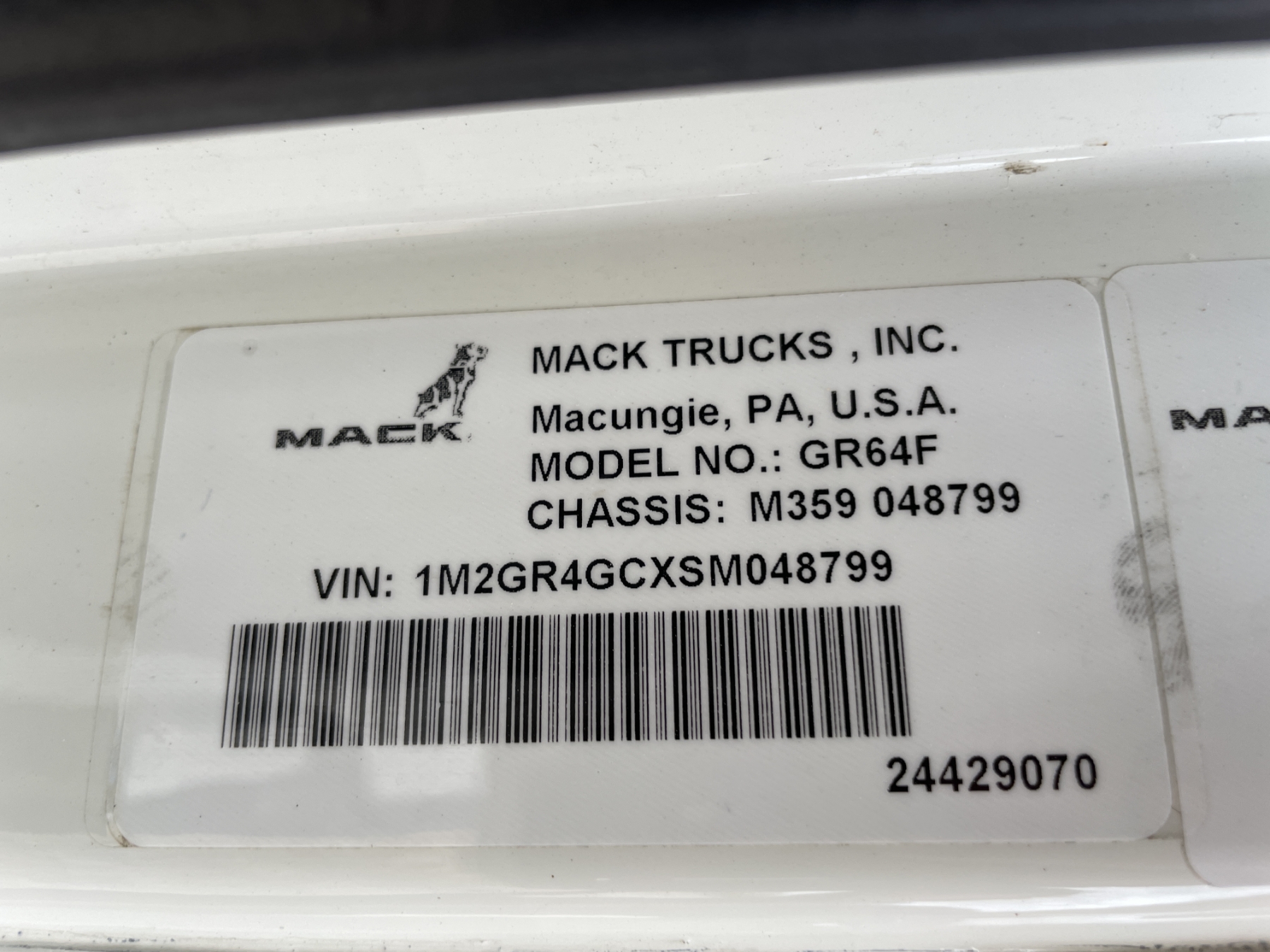 Vehicle ID Number: 1M2GR4GCXSM048799