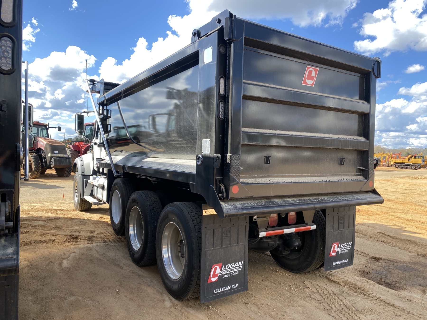 Tri Axle, 455 HP Mack MP8 engine, Mack 14 speed mDrive A/T, 46K rears, 20K front, (New/Unused) 16' Logan Body, high-lift gate, 11R24.5 rear tires, 425/65R22.5 front tires