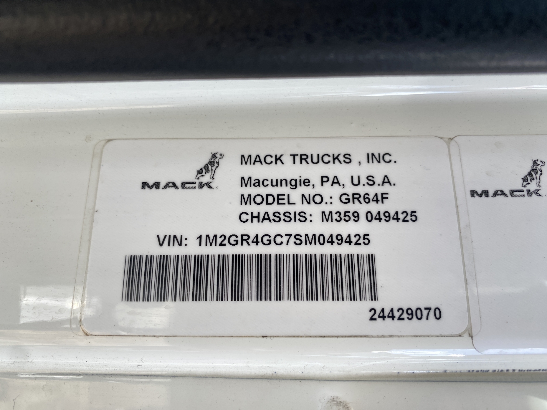 Vehicle ID Number: 1M2GR4GC7SM049425