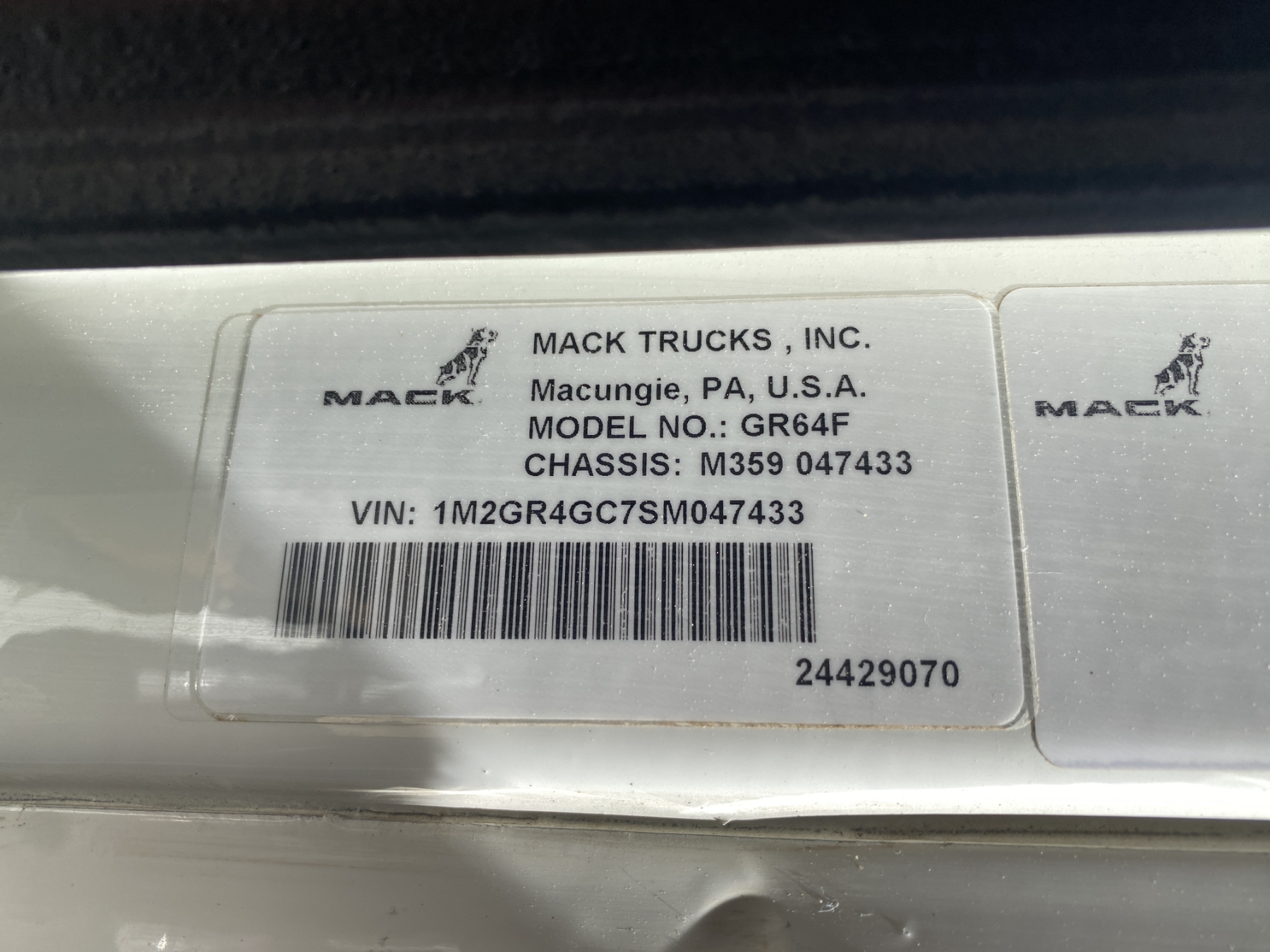 Vehicle ID Number: 1M2GR4GC7SM047433