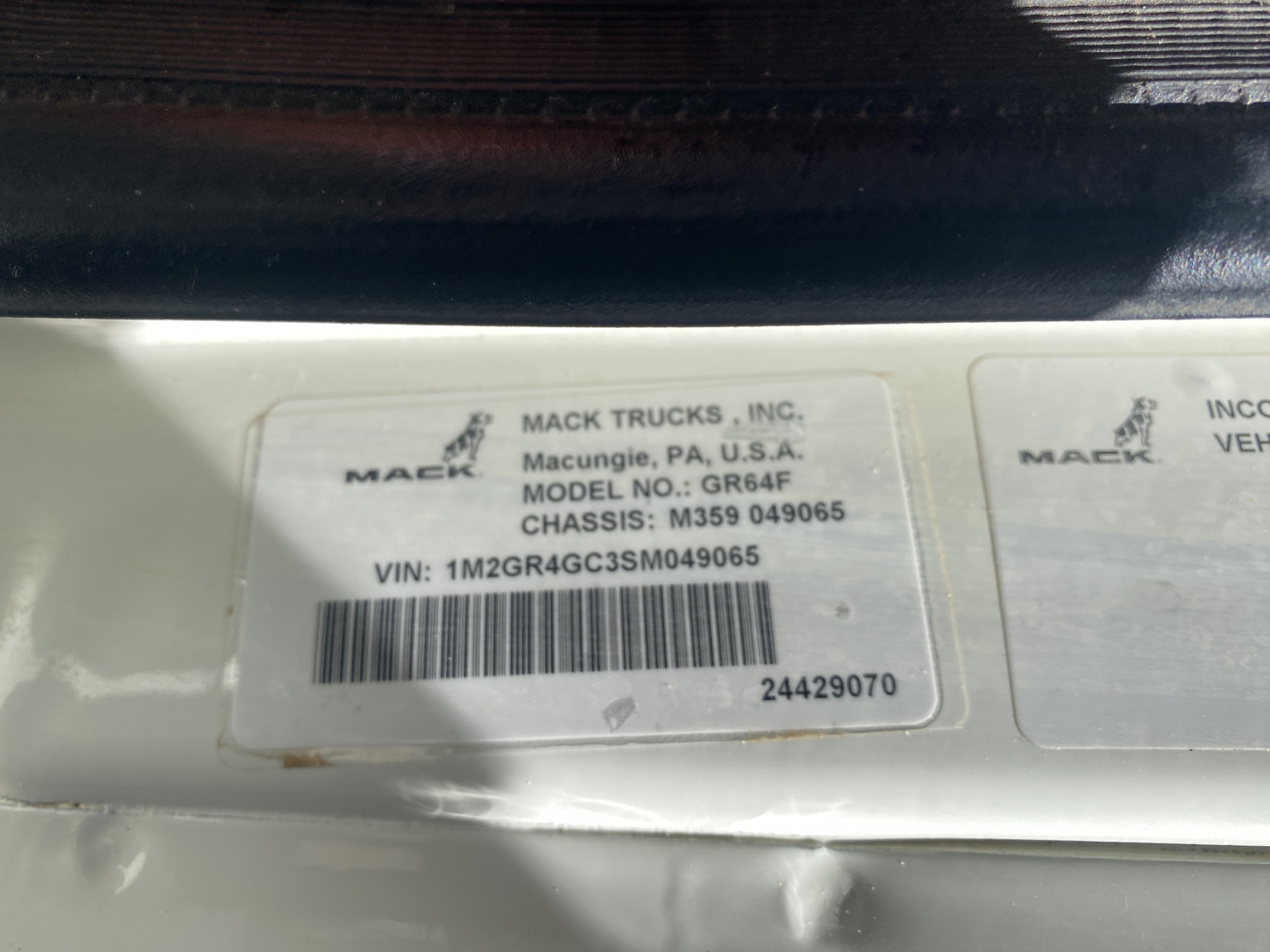 Vehicle ID Number: 1M2GR4GC3SM049065