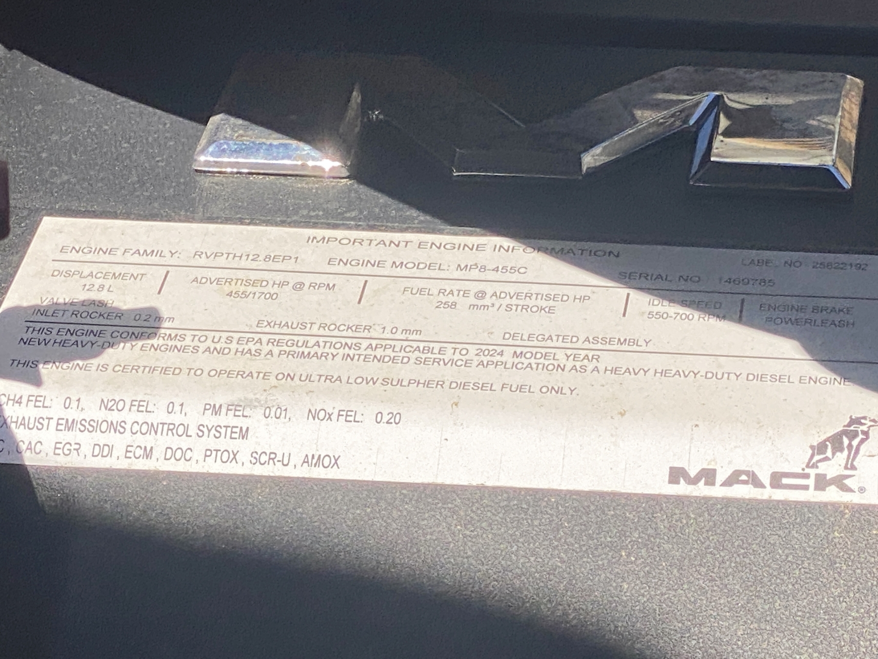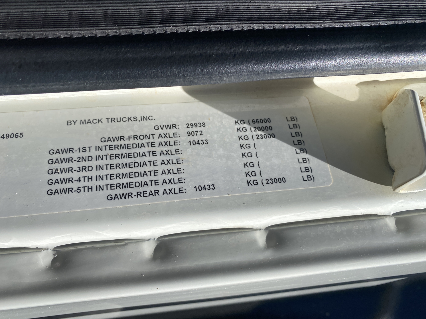 Tri Axle, 455 HP Mack MP8 engine, Mack mDrive A/T, 46K rears, 20K front, 16' Logan body, 11R24.5 rear tires, 425/65R22.5 front tires