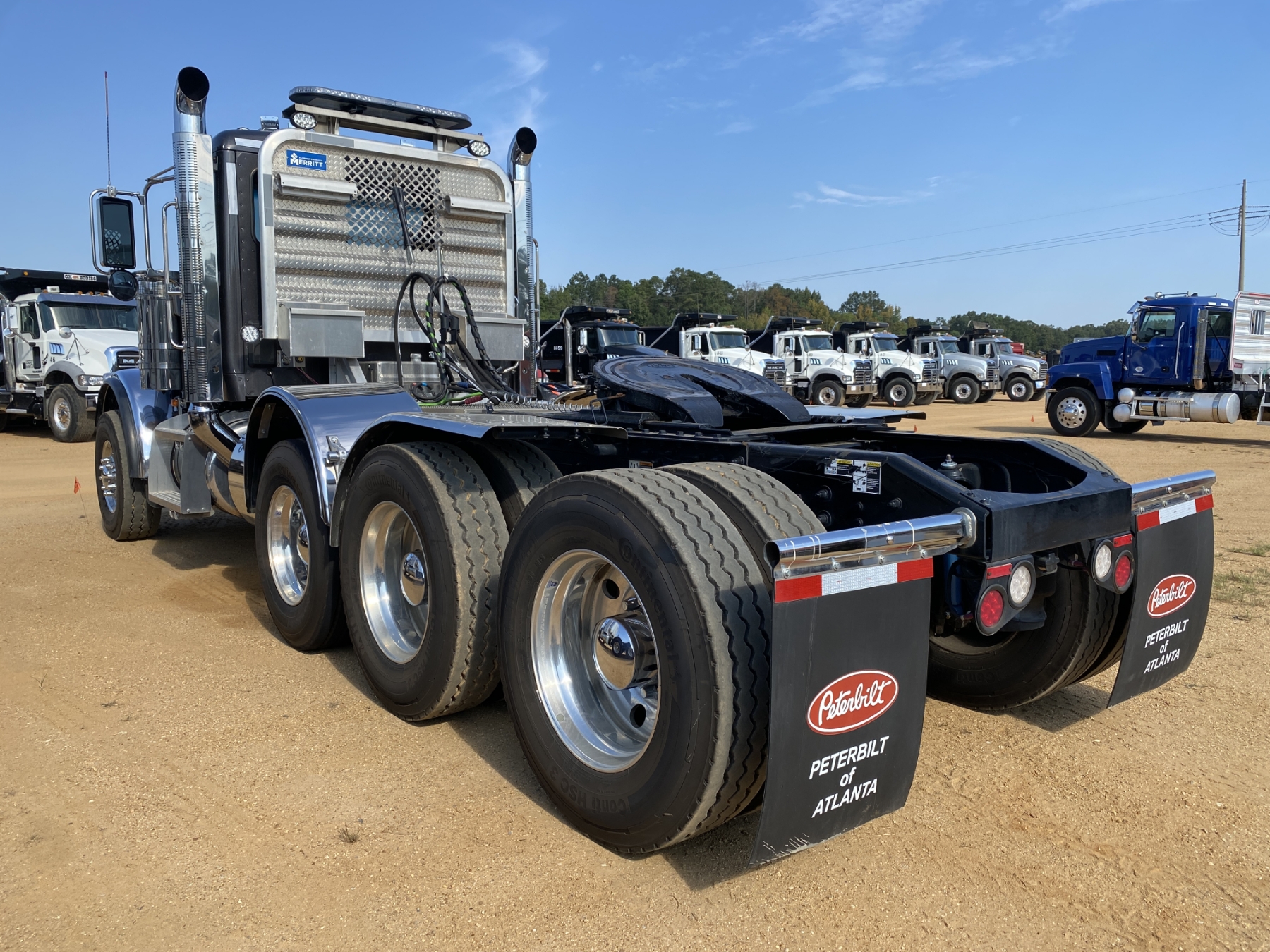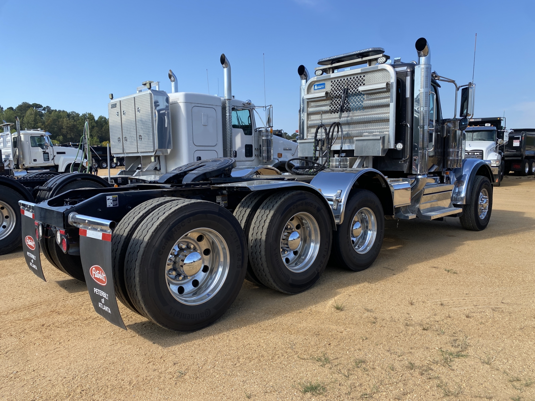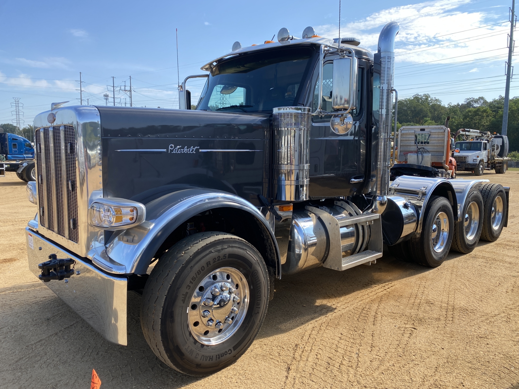 Tri Axle, 605 HP Cummins X15 engine, 18 speed trans, 46K rears, air ride, 20K front, 240" W/B, wet kit, alum headache rack, 11R24.5 rear tires, 315/80R22.5 front tires, all alum
